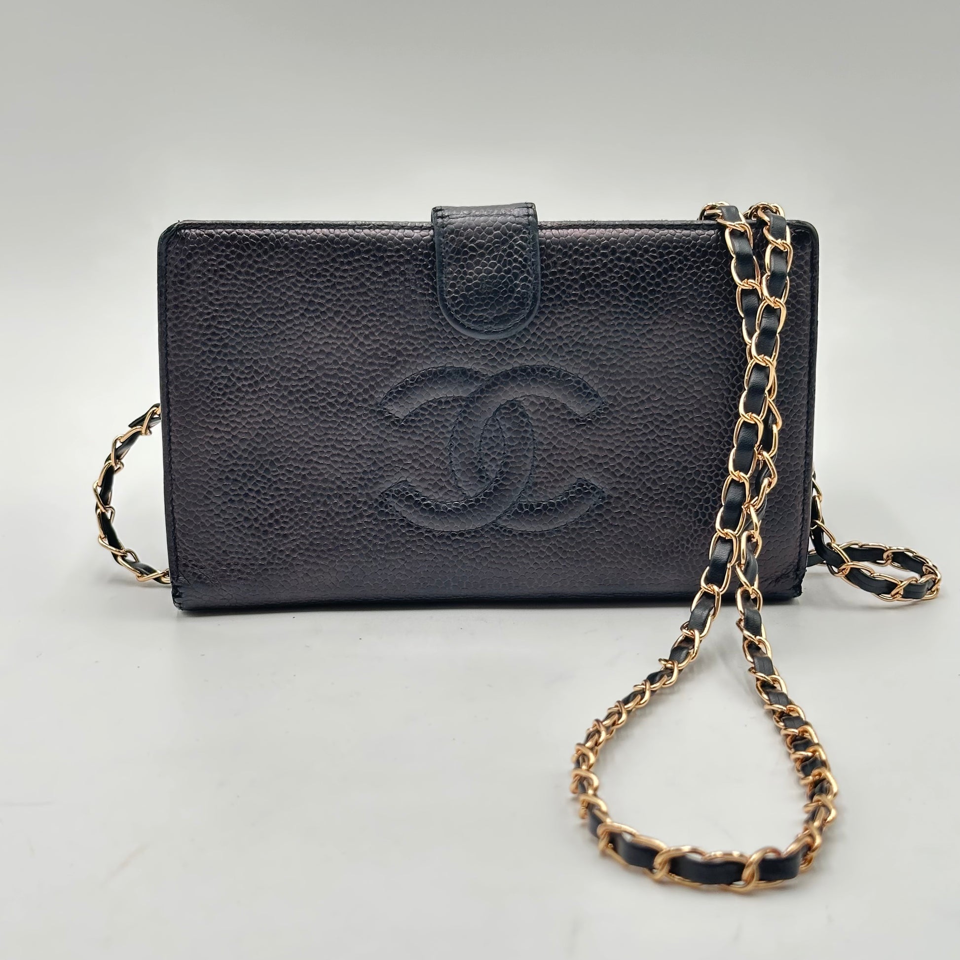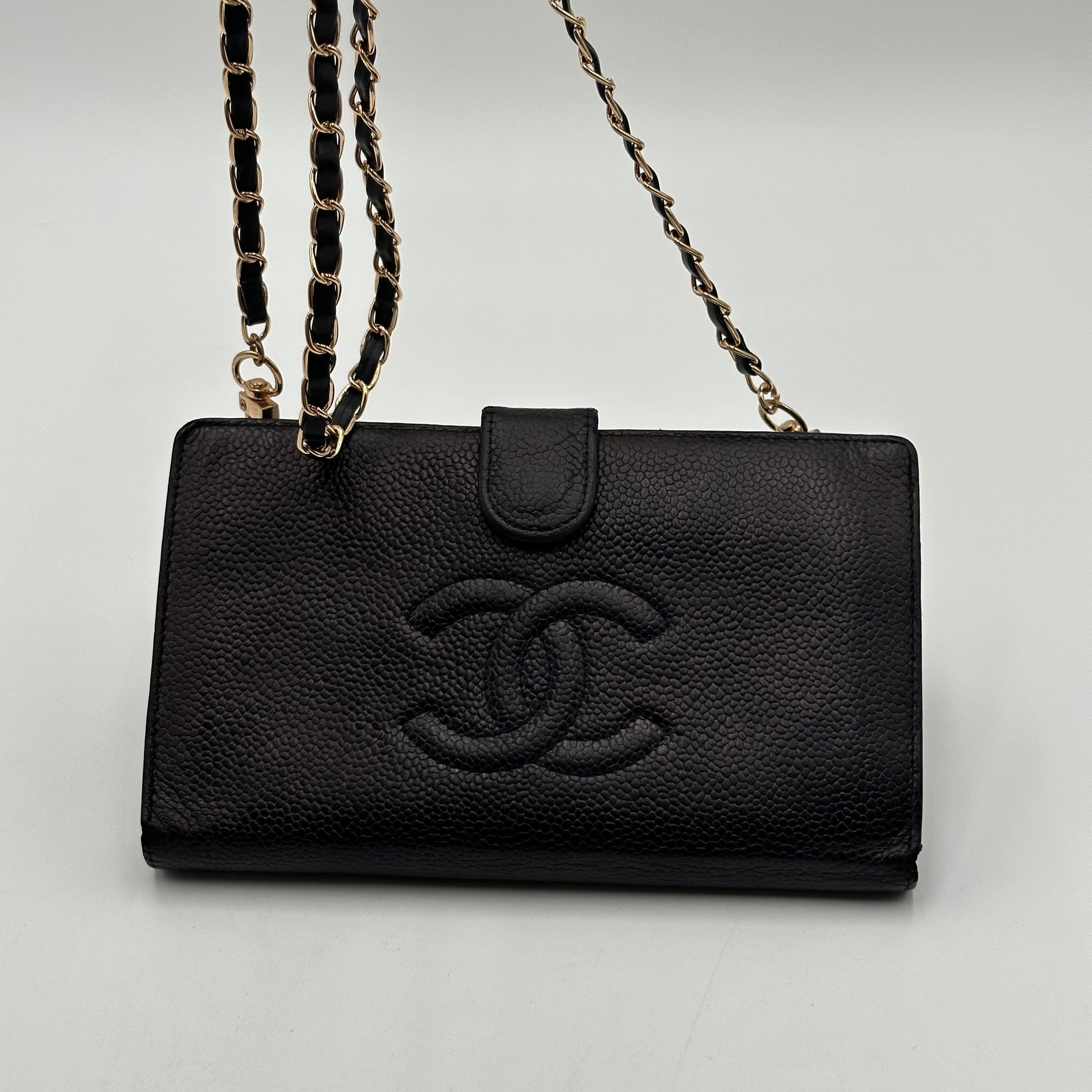 Authentic CHANEL Black Caviar Kisslock Wallet