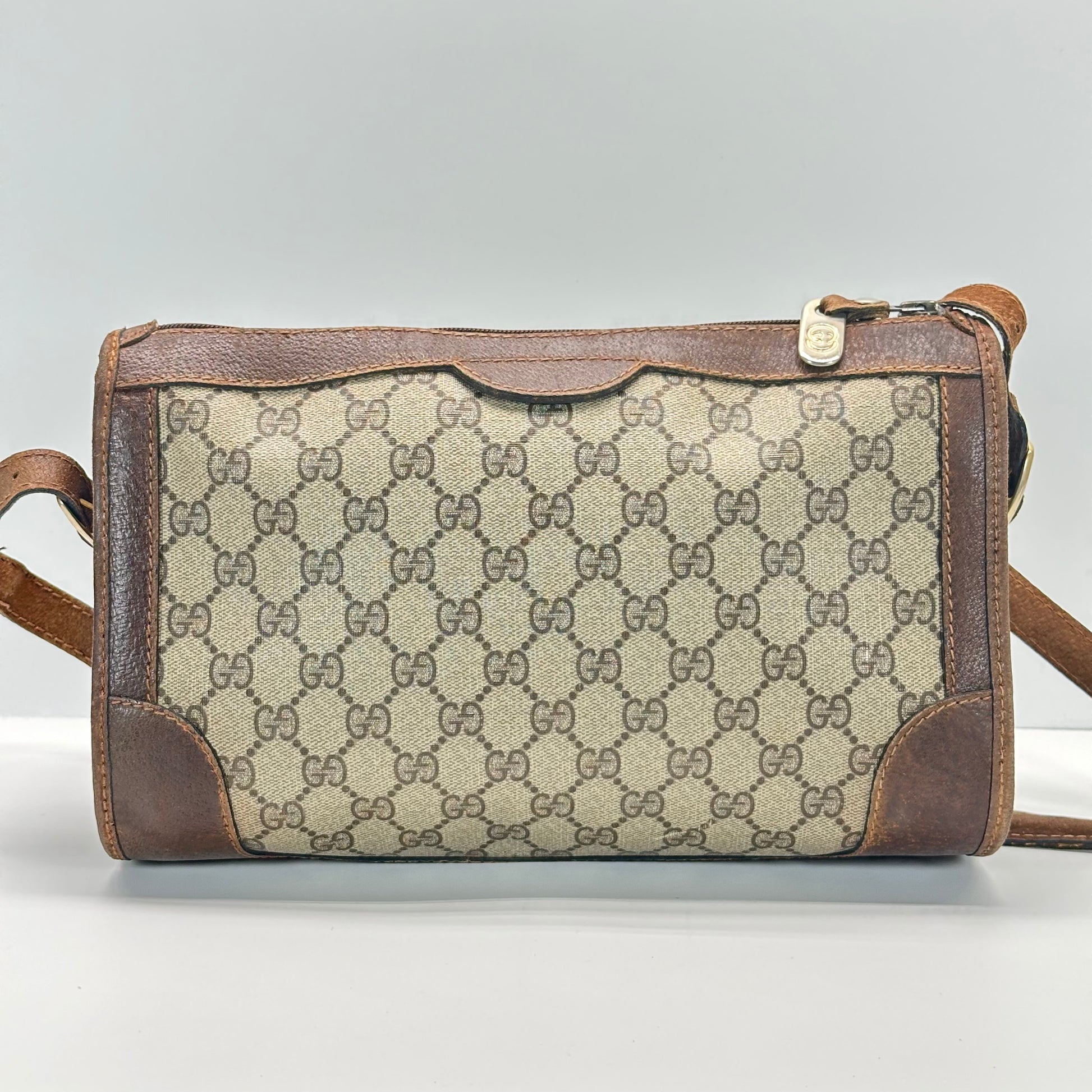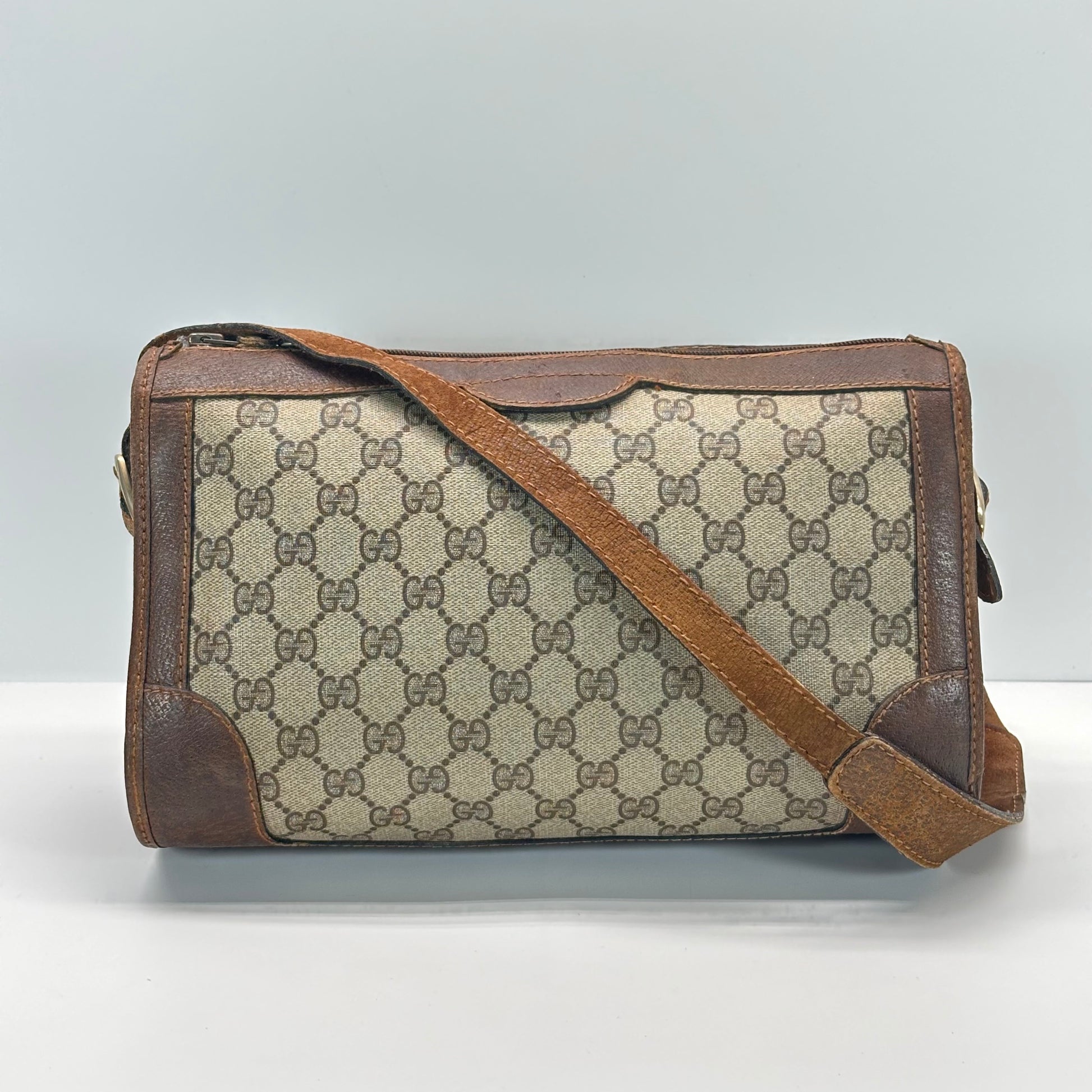 The fashionable GG canvas is in great condition, with no tear for its vintage age! Exterior vachetta and the corners/ edges reflect its vintage charm with signs of use and scuffs. The interior shows light use but no peeling or tears. Zipper works well to open and close. Original strap shows heavy use but is still strong with lots of age left. A non branded guitar crossbody strap has been included for you to switch it out from time to time.