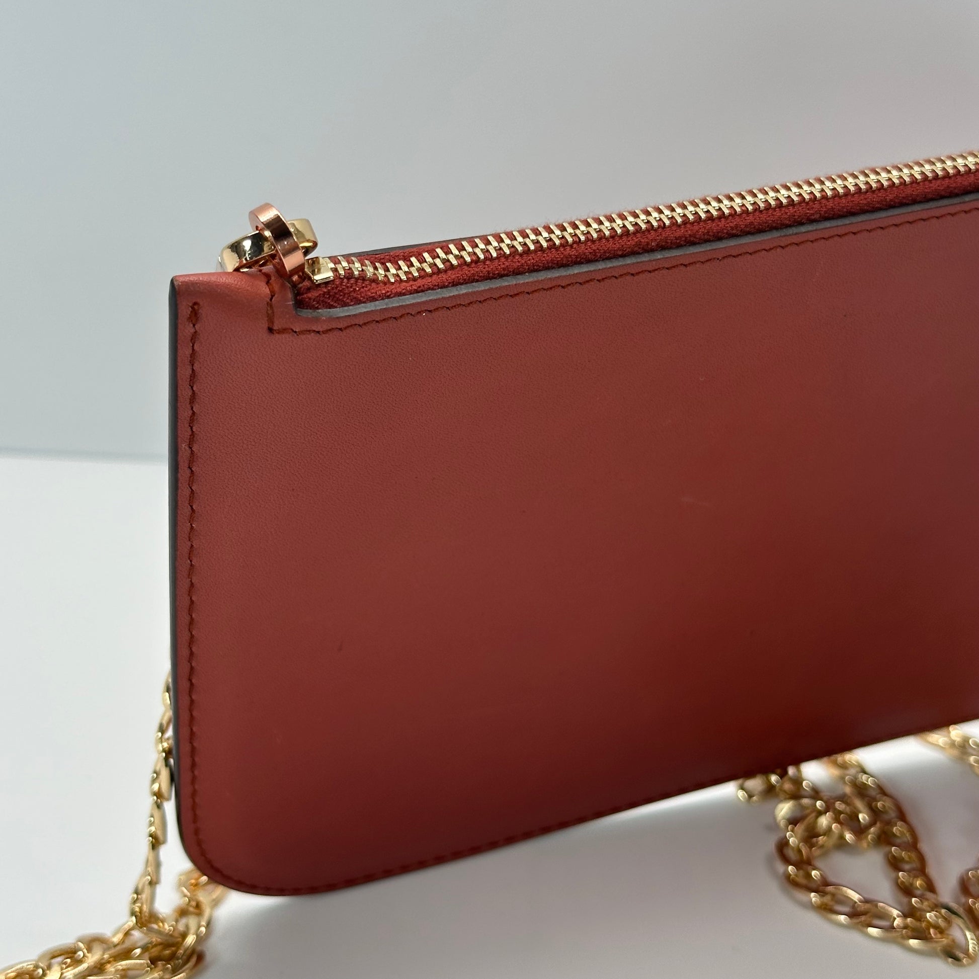 This listing also includes a matching wristlet, which can be worn separately as a crossbody with the included non-branded chain strap—giving you two looks in one!