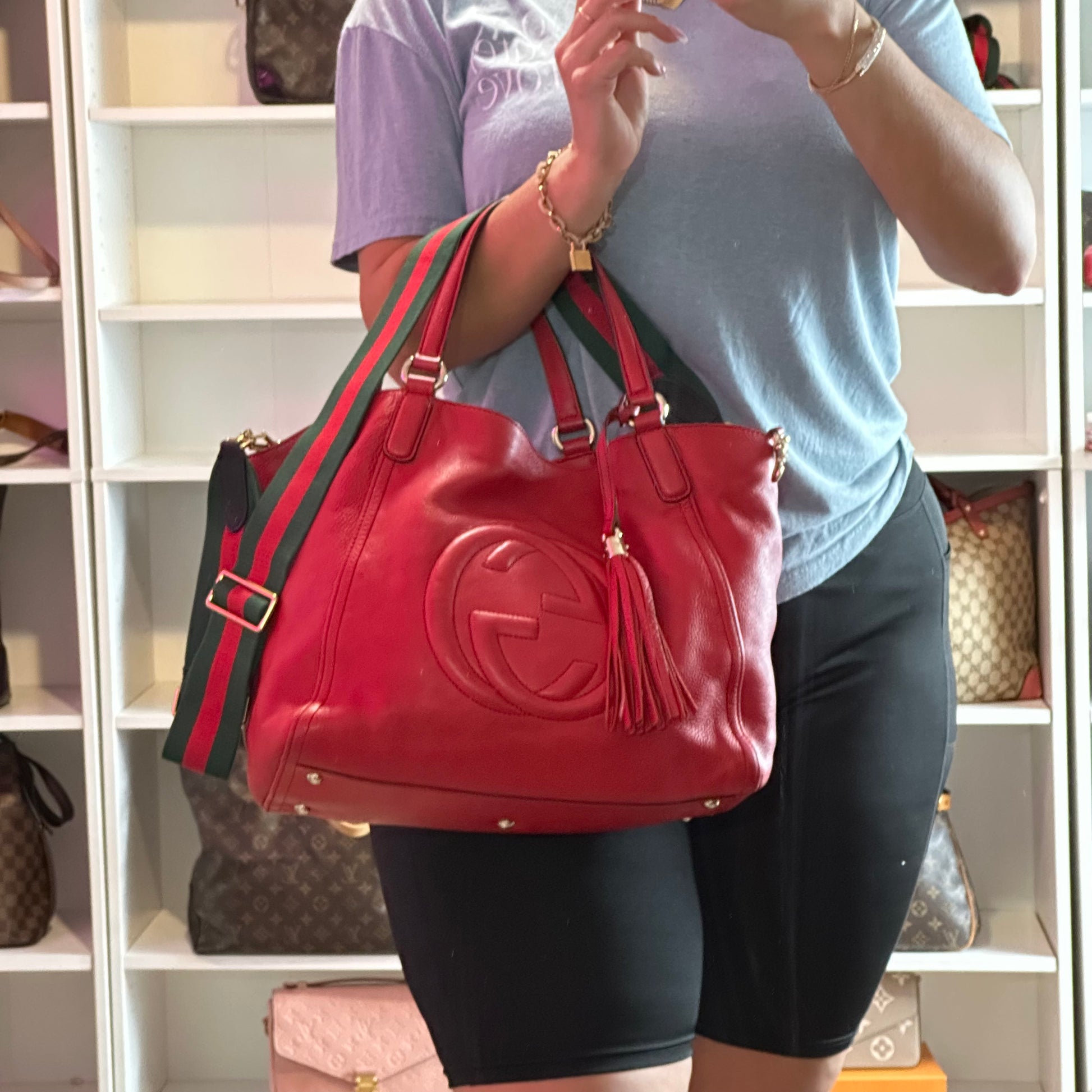 Brand/Model: Authentic GUCCI Red Pebbled Leather Soho Top Handle Tote Bag