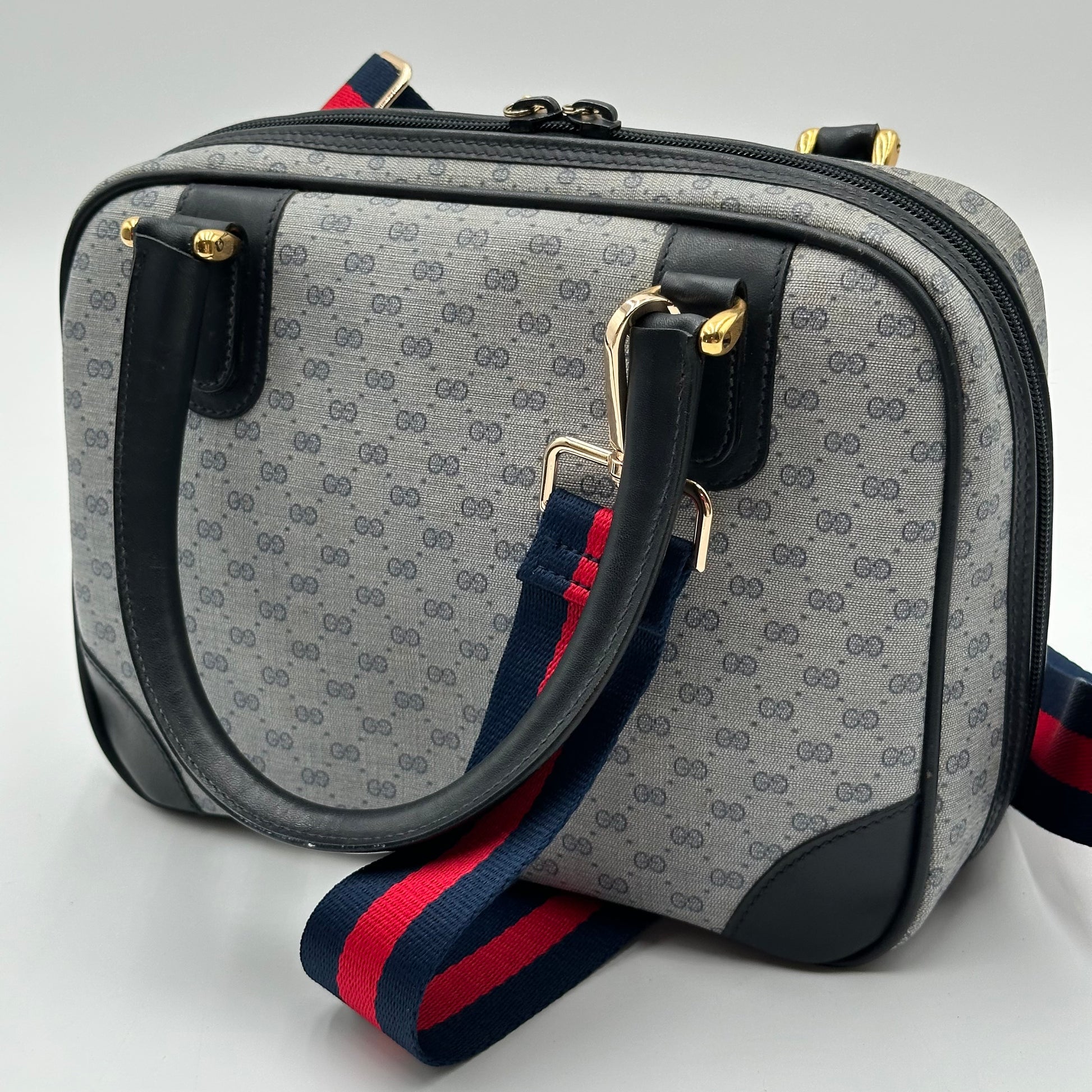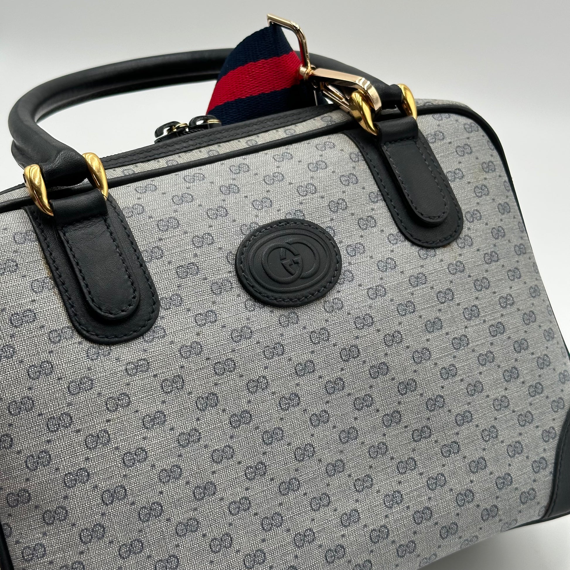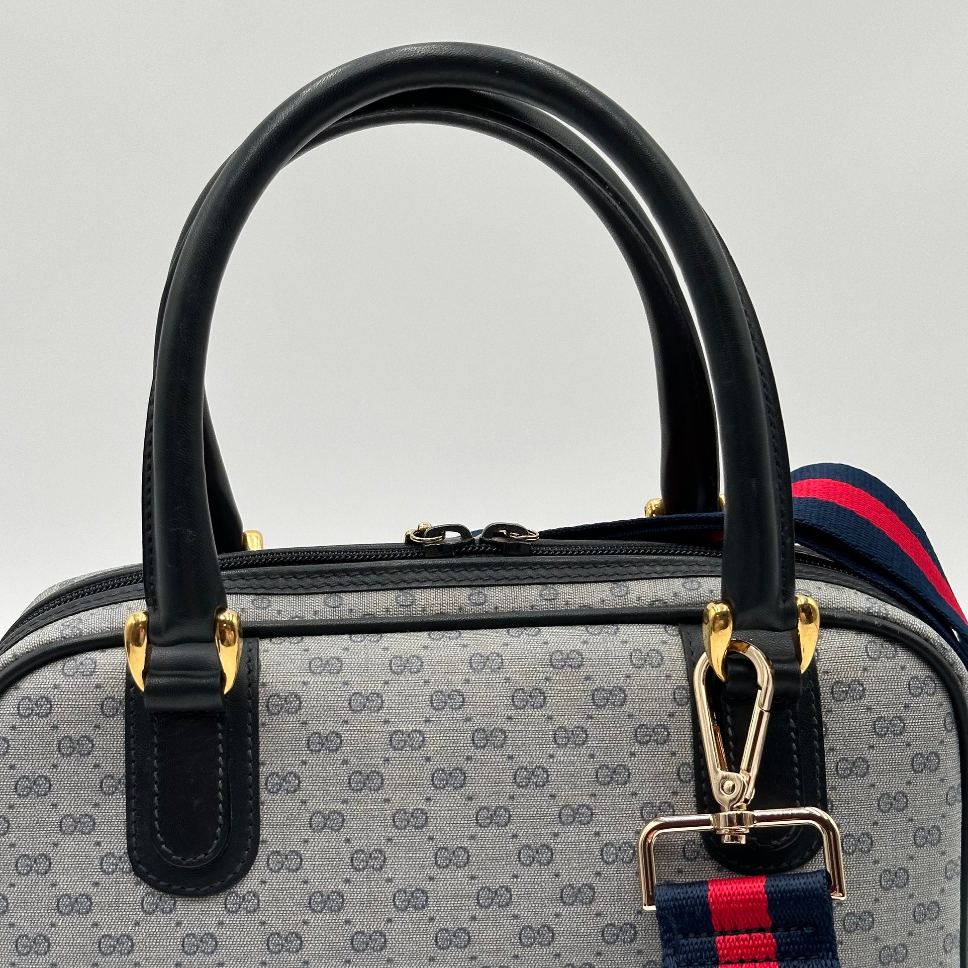 This vintage Gucci mini canvas Boston bag is a timeless piece with a touch of modern versatility. Measuring 9.5 inches in length, 7.5 inches in height, and 4 inches in width, it offers just the right amount of space while maintaining a compact, elegant silhouette. The canvas exterior is in good condition with light signs of use along the edges, showcasing the gentle character of a well-kept vintage item. The top handles are in great condition, maintaining their structure and strength. Inside, the soft cloth lining shows some rubbing and peeling consistent with age, but it is not sticky or damaged—simply an authentic sign of its vintage status. A thick, non-branded guitar strap has been added, allowing you to wear it comfortably as either a crossbody or a handbag. This piece is perfect for the collector or fashion lover looking to blend classic Gucci charm with everyday functionality.