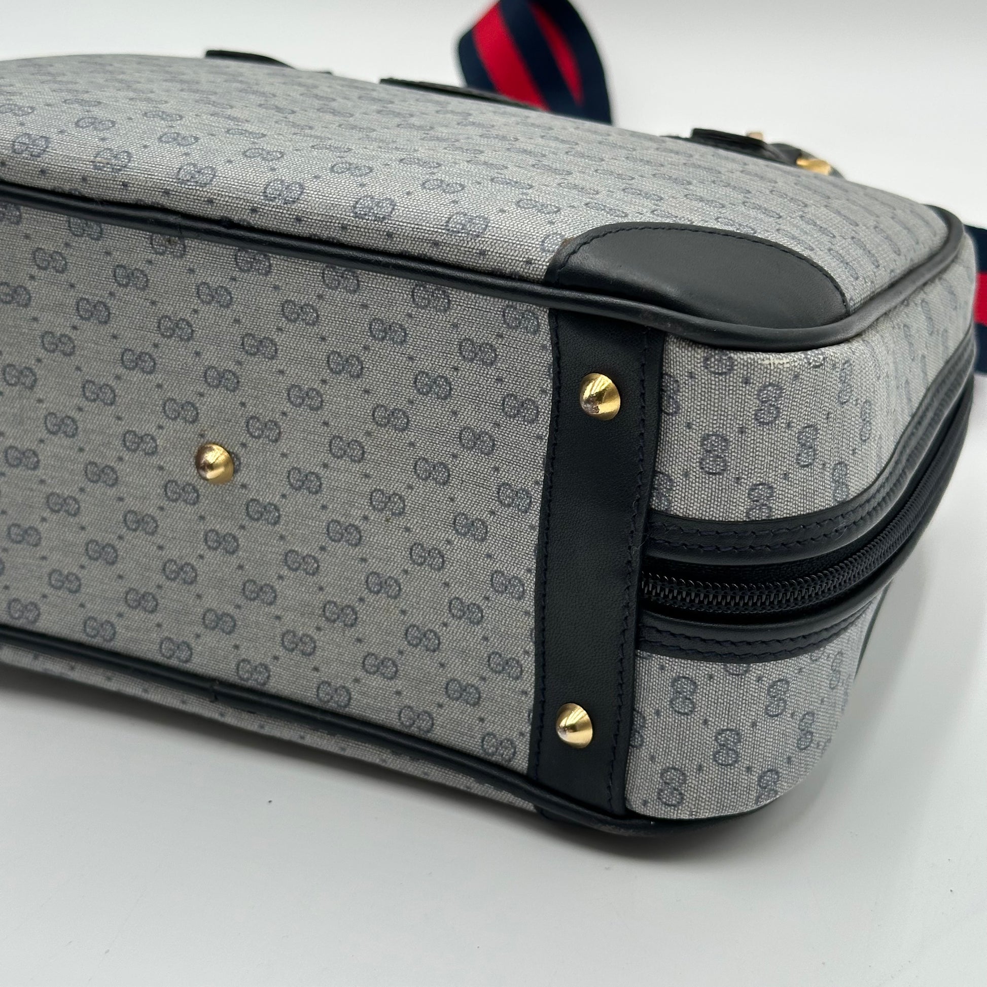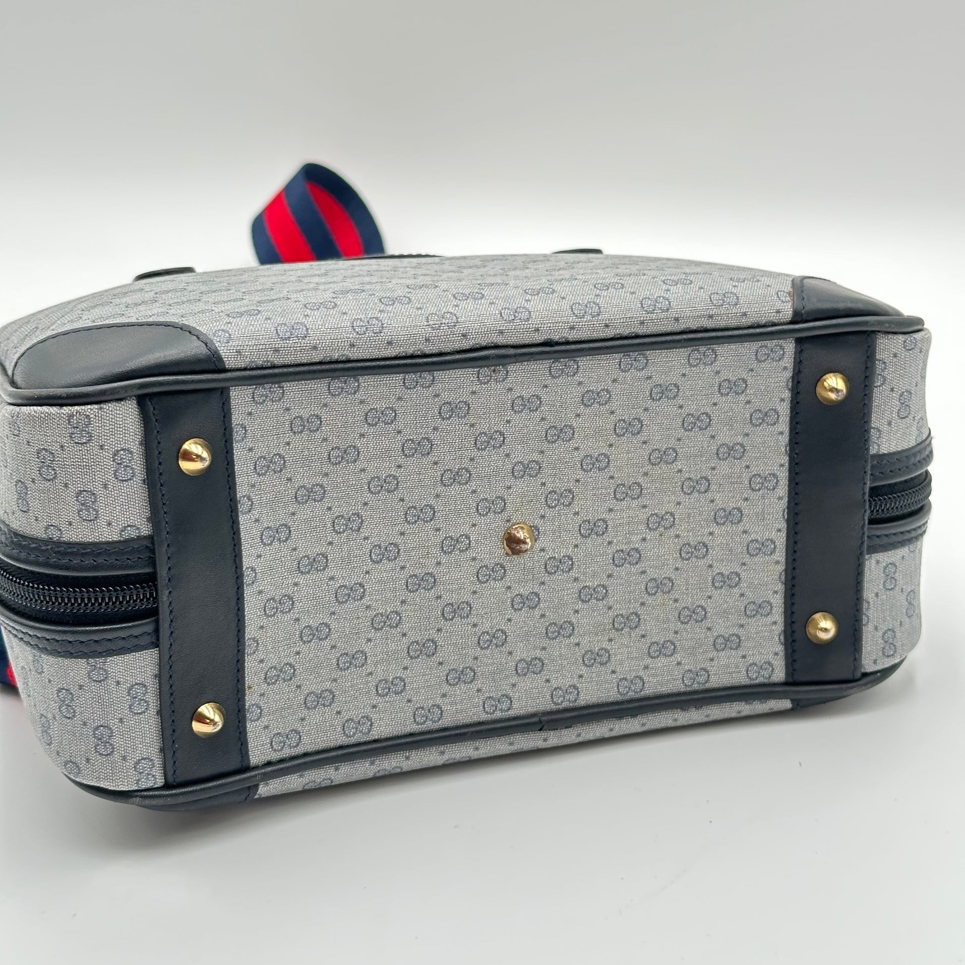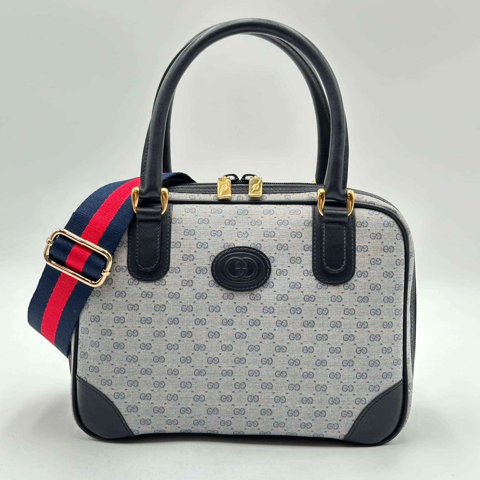 This vintage Gucci mini canvas Boston bag is a timeless piece with a touch of modern versatility. Measuring 9.5 inches in length, 7.5 inches in height, and 4 inches in width, it offers just the right amount of space while maintaining a compact, elegant silhouette. The canvas exterior is in good condition with light signs of use along the edges, showcasing the gentle character of a well-kept vintage item. The top handles are in great condition, maintaining their structure and strength. Inside, the soft cloth lining shows some rubbing and peeling consistent with age, but it is not sticky or damaged—simply an authentic sign of its vintage status. A thick, non-branded guitar strap has been added, allowing you to wear it comfortably as either a crossbody or a handbag. This piece is perfect for the collector or fashion lover looking to blend classic Gucci charm with everyday functionality.