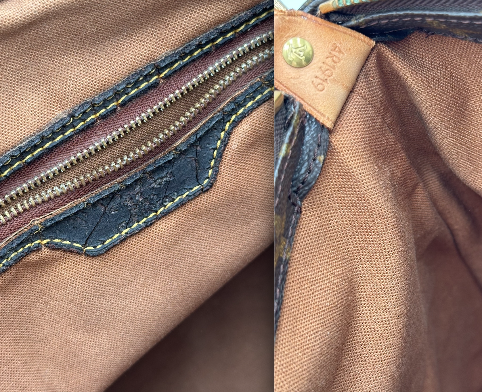 The vachetta lining inside the pocket where the heat stamp is located shows signs of dryness and cracking, a common characteristic in older pieces. The zippers function smoothly, and the date code AR1919 confirms French production in the 11th week of 2019. For an elevated, refreshed look, the bottom vachetta leather base has been professionally painted and sealed in black. Please note, while the base has been restored, it may still show signs of rubbing and scuffs on the corners. A beautiful blend of classic Louis Vuitton craftsmanship and modern updates, perfect for any collector or everyday luxury lover.
