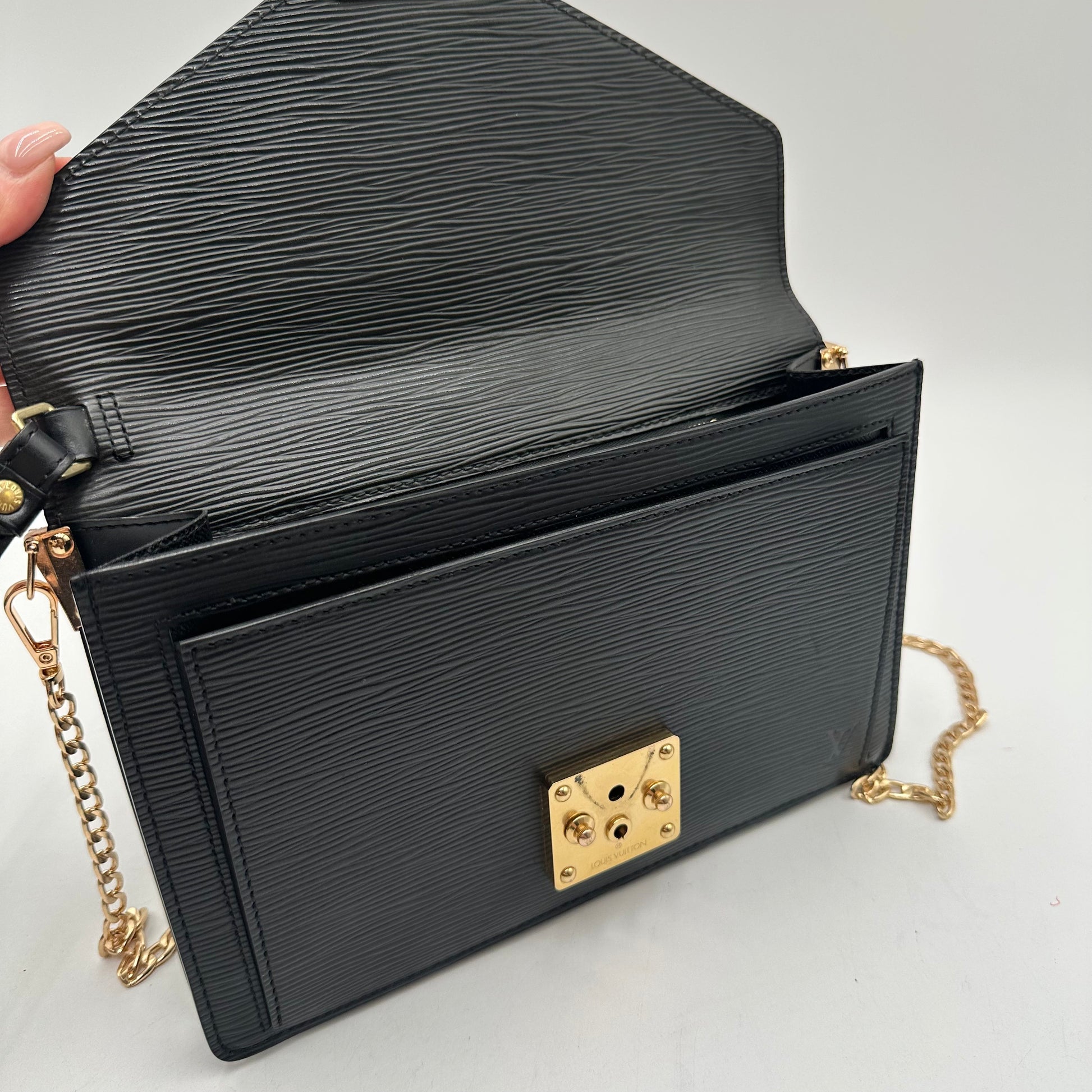 Authentic Louis Vuitton 2000 Black Epi Dragonne Sellier Clutch Crossbody