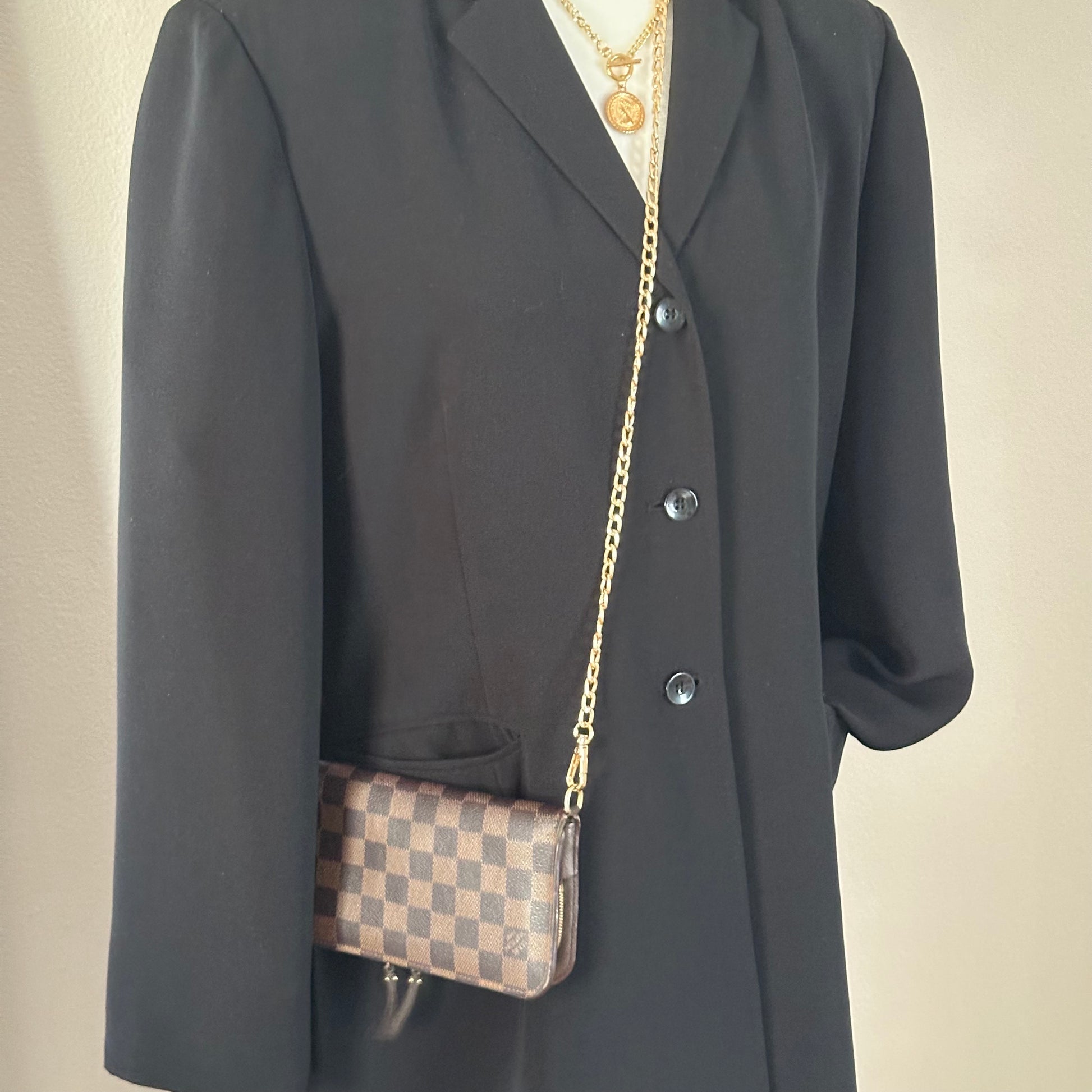 This wallet is in great condition with no cracks on the canvas. The exterior remains vibrant and luxurious, while the interior is clean with no signs of use. The corner flap where the original wristlet ring is located shows a bit of lifting, but it doesn’t impact its functionality at all. The wallet originally comes with a ring on one end, perfect for attaching a wristlet strap or keychain and a tiny ring on the other side to attach the crossbody chain. To take it to the next level, I’m including a complimentary gold non-branded chain so you can wear it as a crossbody straight out of the box. And if you want to customize it even more, I can install two discreet rings on the back free of charge—just message me before purchasing to request.
