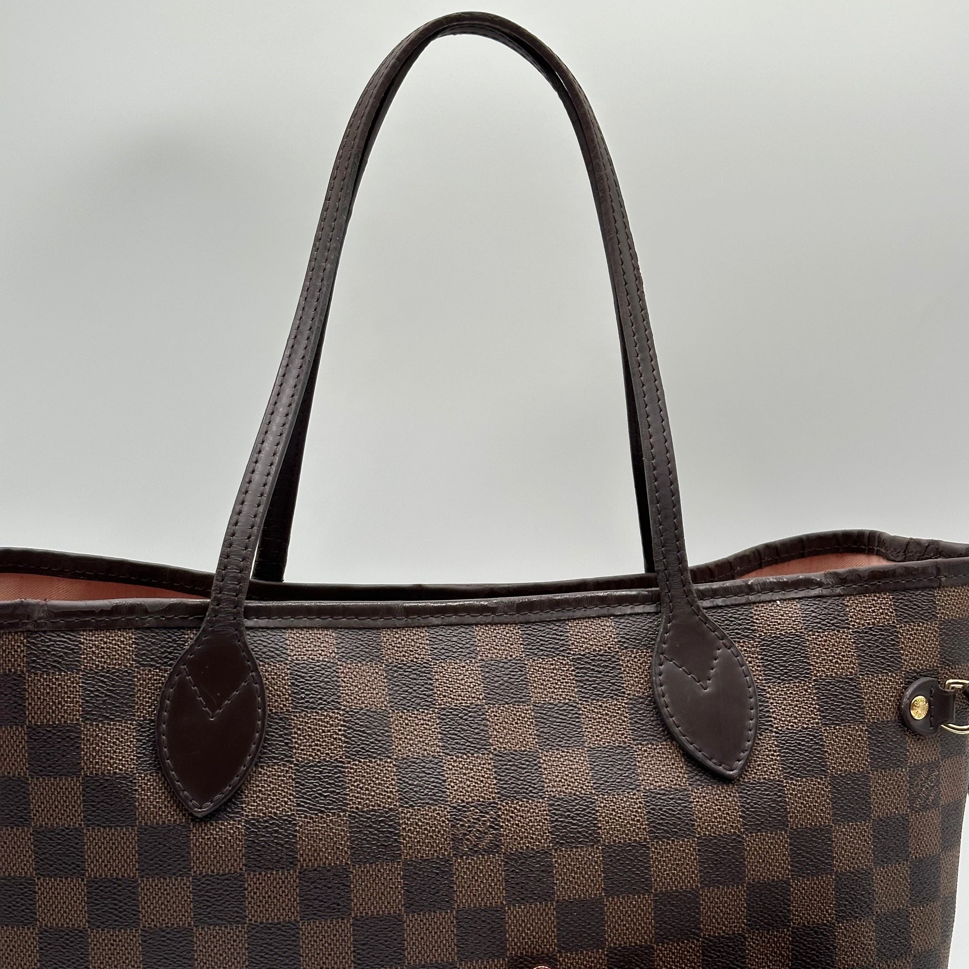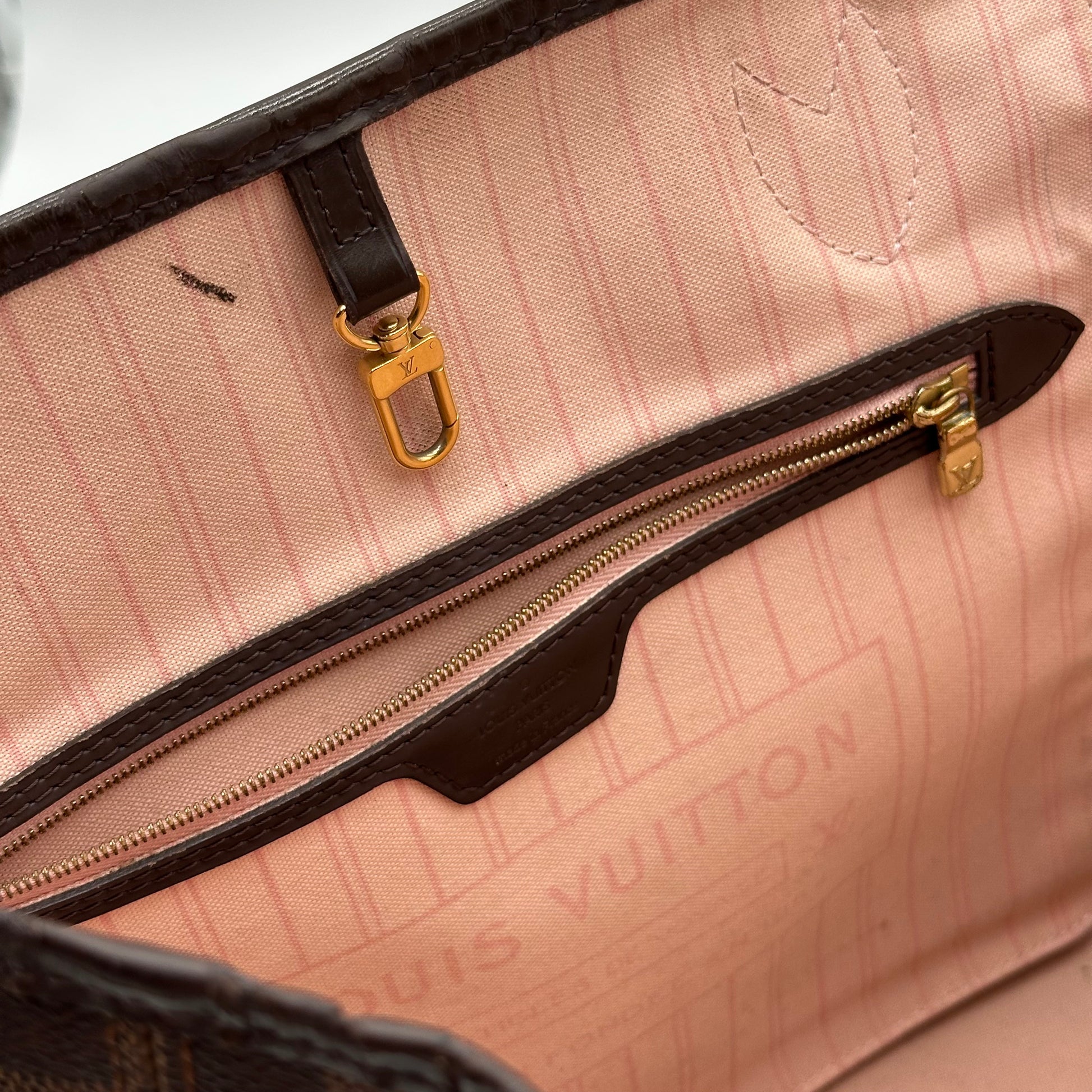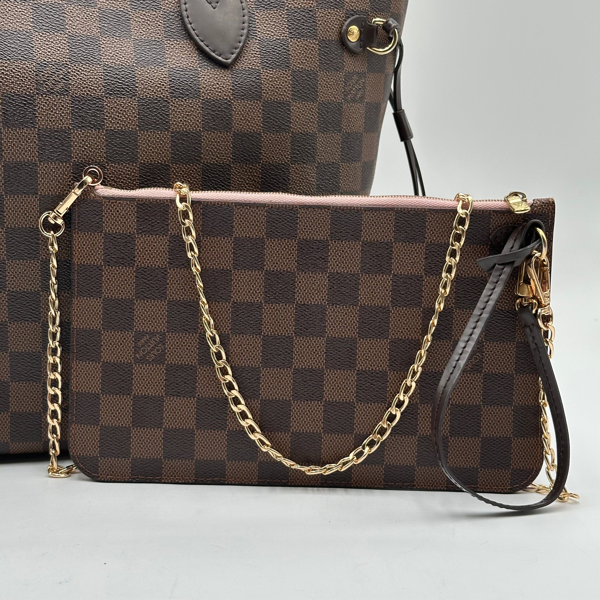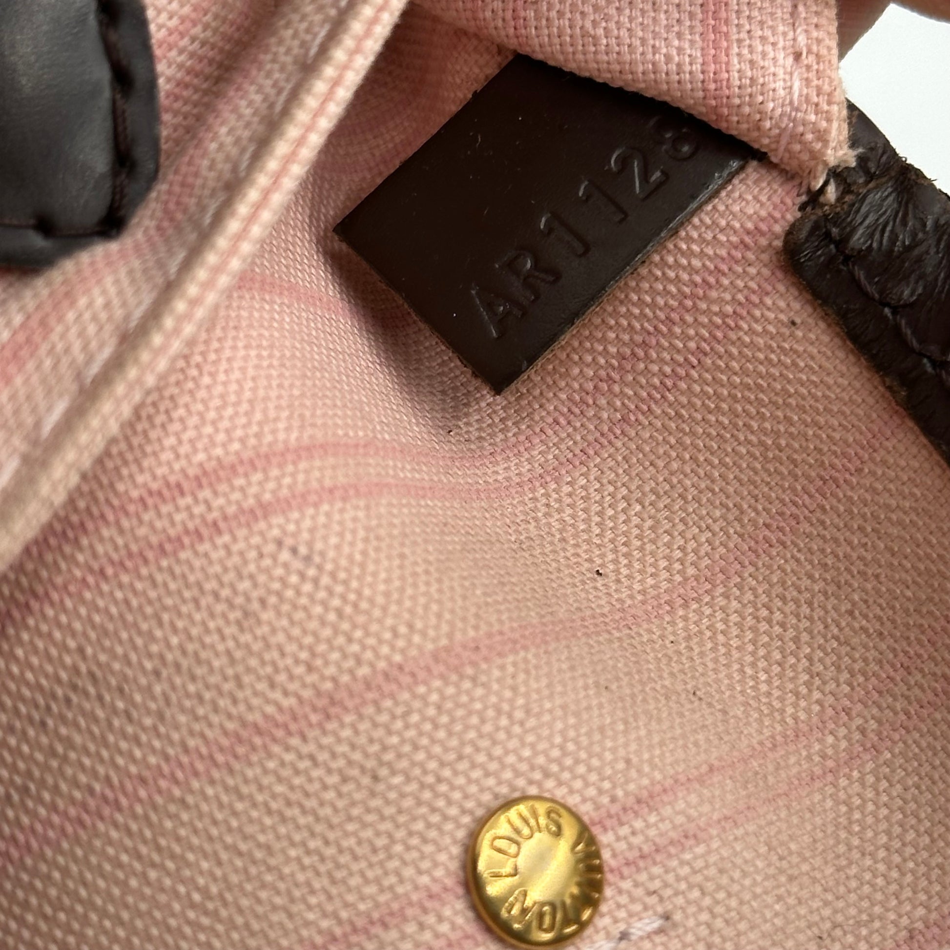 Authentic Louis Vuitton 2018 Damier Ebene Neverfull Rose Ballerine MM + Wristlet