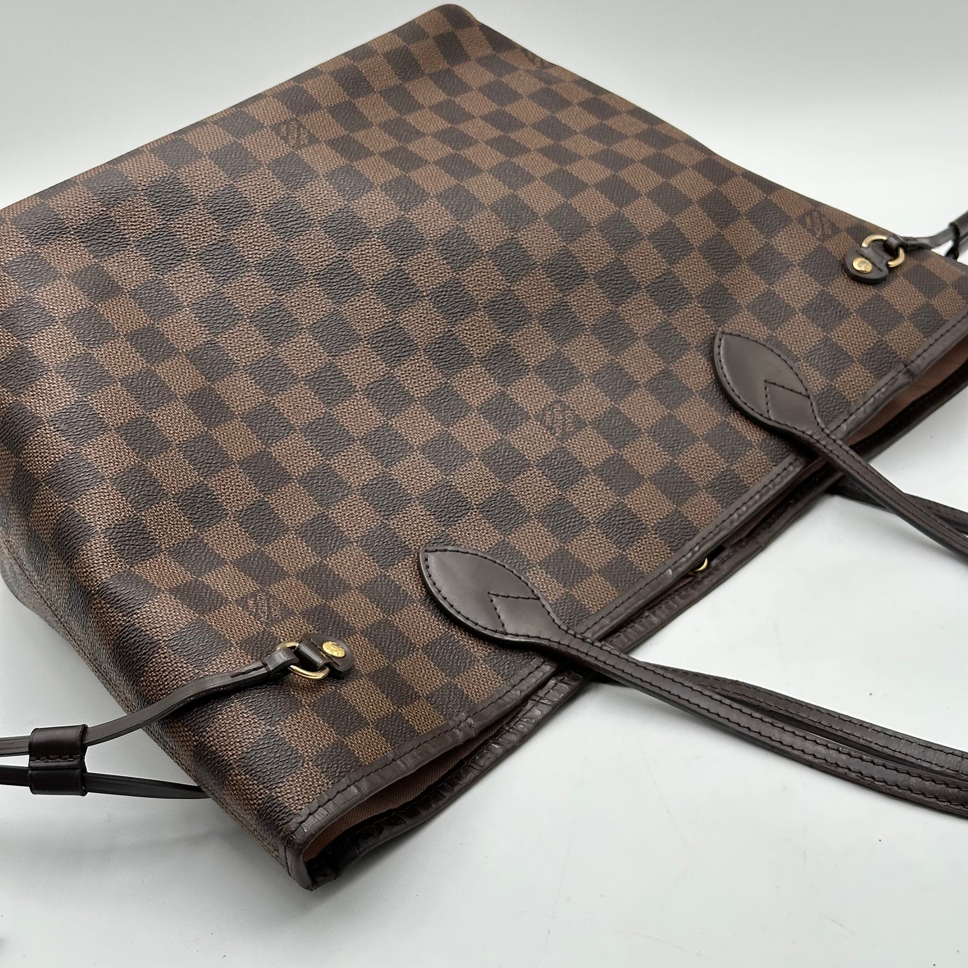 This authentic Louis Vuitton Damier Ebene Neverfull MM comes as a complete set with its matching wristlet—perfect for the LV lover who wants functionality and fashion in one beautiful bundle. The interior of the tote features the lovely Rose Ballerine pink lining, adding a soft, feminine pop against the rich brown exterior. The canvas on both the tote and wristlet is vibrant, with no cracks, and has retained its striking pattern over time. Date code on the tote is AR1128, being produced in 2018.
