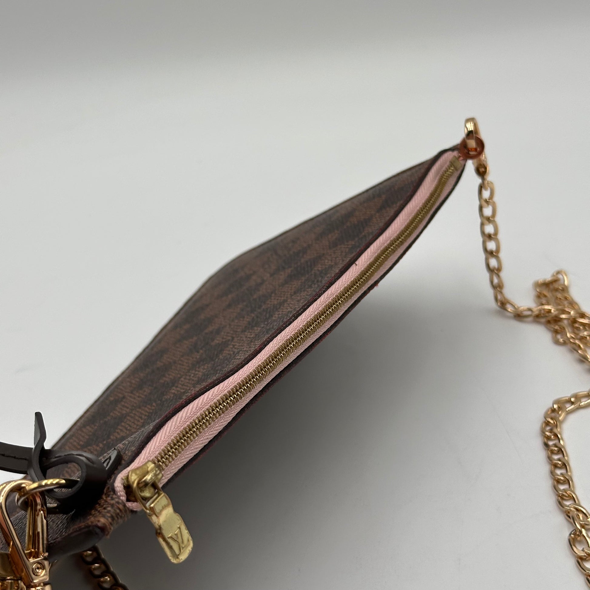 There is some light rubbing on the upper piping and handles, but the edges have been carefully restored with edge coat glazing for a polished look and extended life. The interior shows normal signs of use, but there are no major stains or tears—just the charm of a well-loved piece. The wristlet is in great condition and includes a non-branded gold chain, so you can wear it crossbody for errands, events, or evenings out. It easily fits your iPhone Pro Max, cards, keys, and lipstick. Date code on the wristlet is MS0198, being produced in 2018.