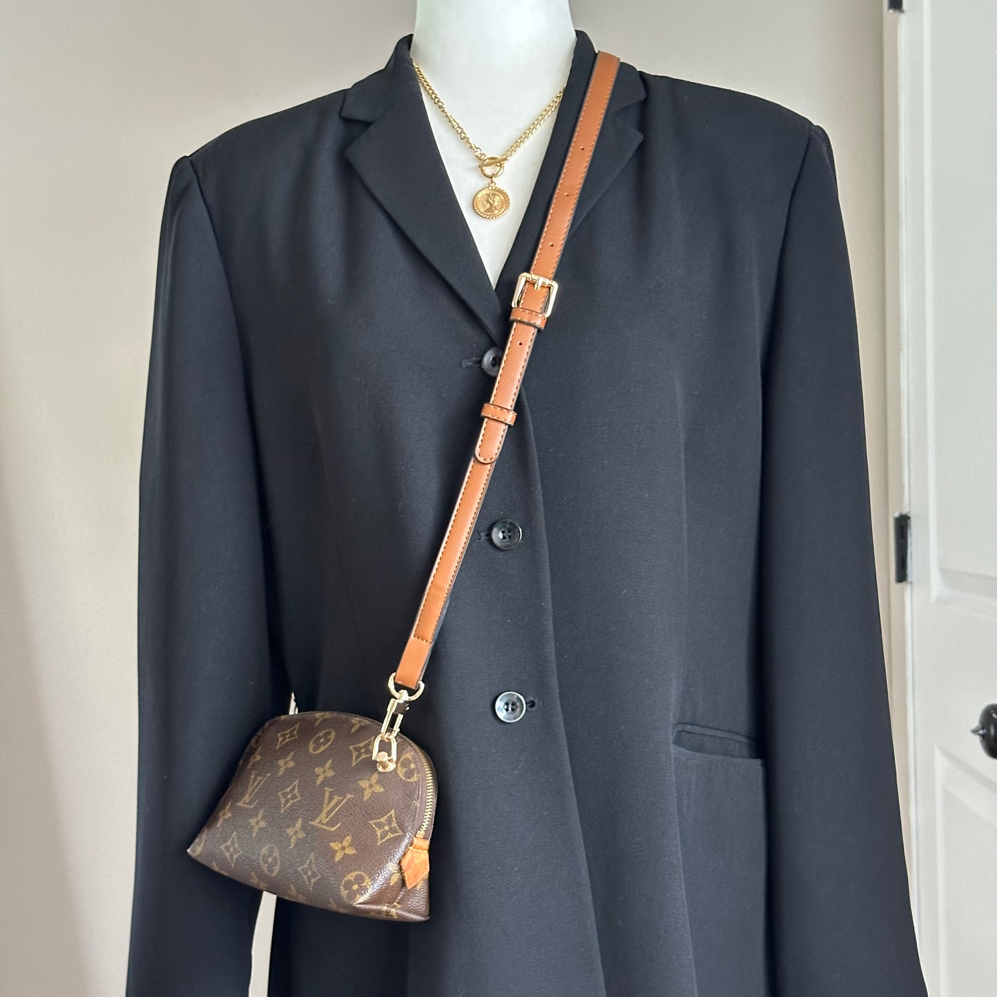 Elevate your everyday look with this vintage Louis Vuitton Cosmetic Case, thoughtfully updated with crossbody functionality. Measuring approximately 7" x 5", this timeless piece features LV's iconic canvas in excellent condition — no tears, and corners showing minimal to no wear.The secure zipper opening works just fine with no issues.
