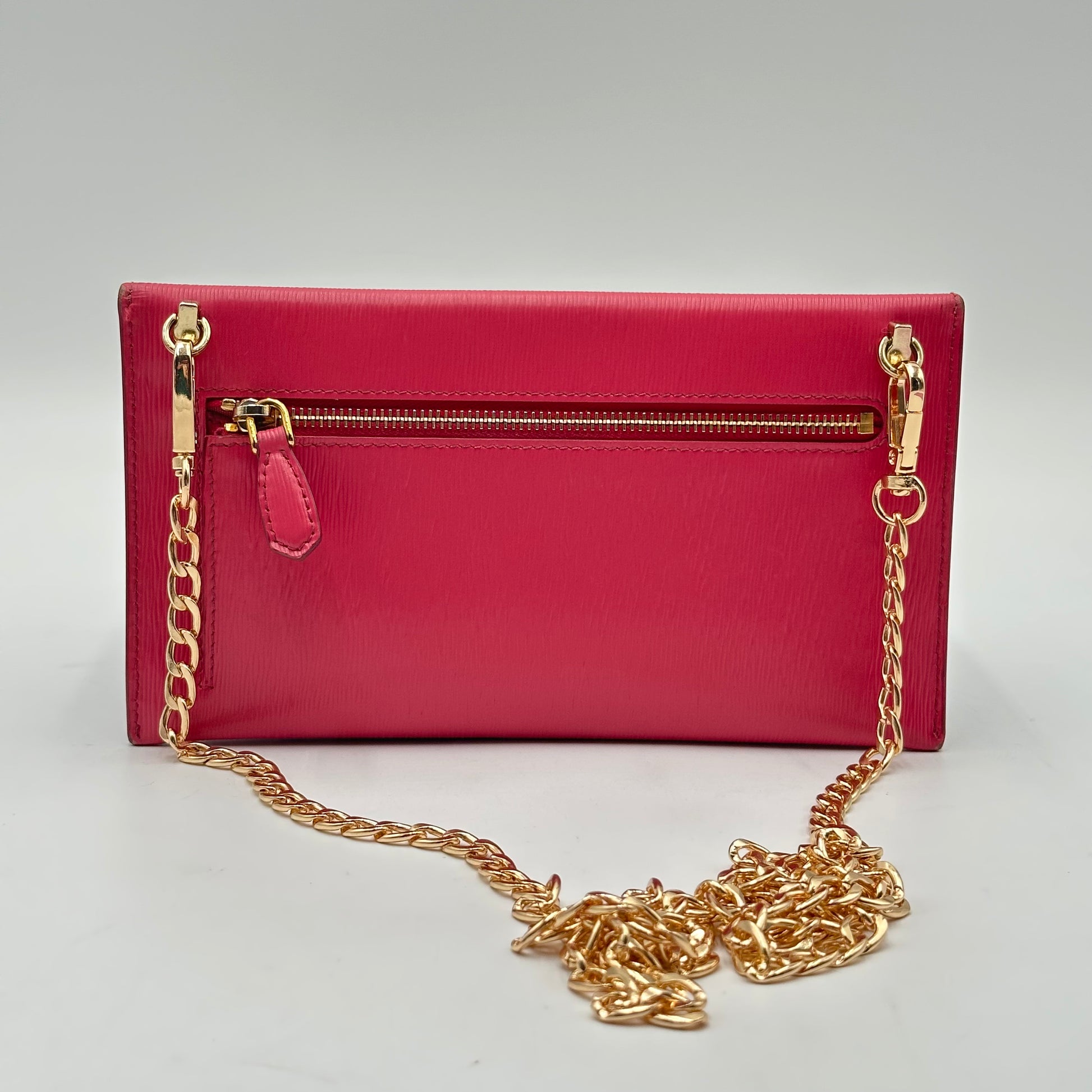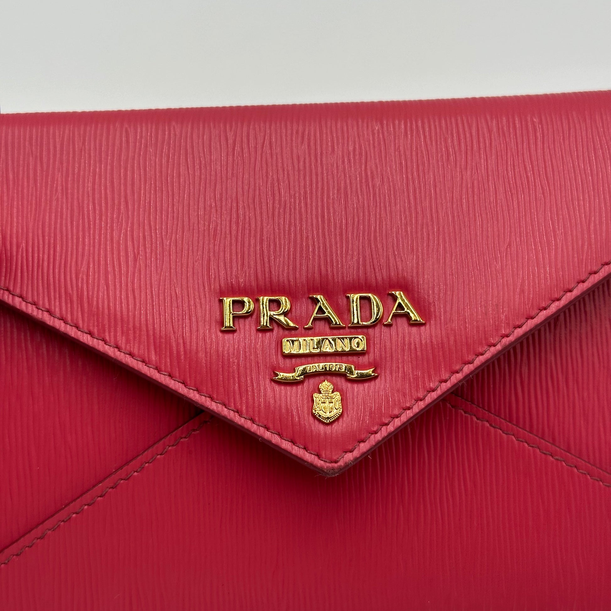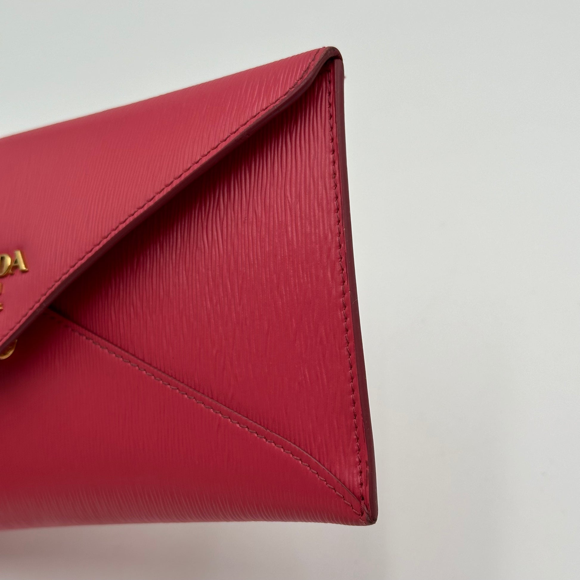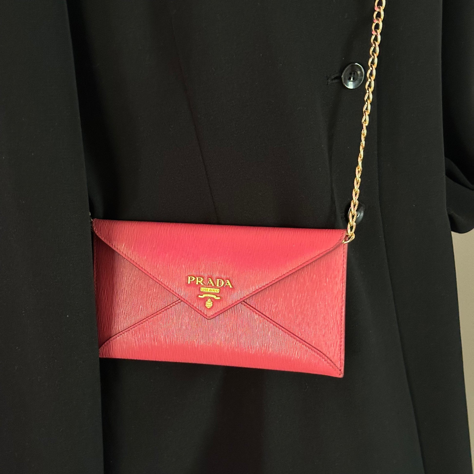 This Prada Fuchsia Saffiano Envelope Wallet is a bold, beautiful statement piece that blends high fashion with everyday function. Crafted from Prada’s signature durable Saffiano leather in a stunning fuchsia hue, this wallet brings just the right pop of color to elevate any outfit. Measuring approximately 7.5 inches in length and 5 inches in height, it’s perfectly sized to hold your essentials—including a large iPhone Pro Max, cards, and cash—without the bulk.