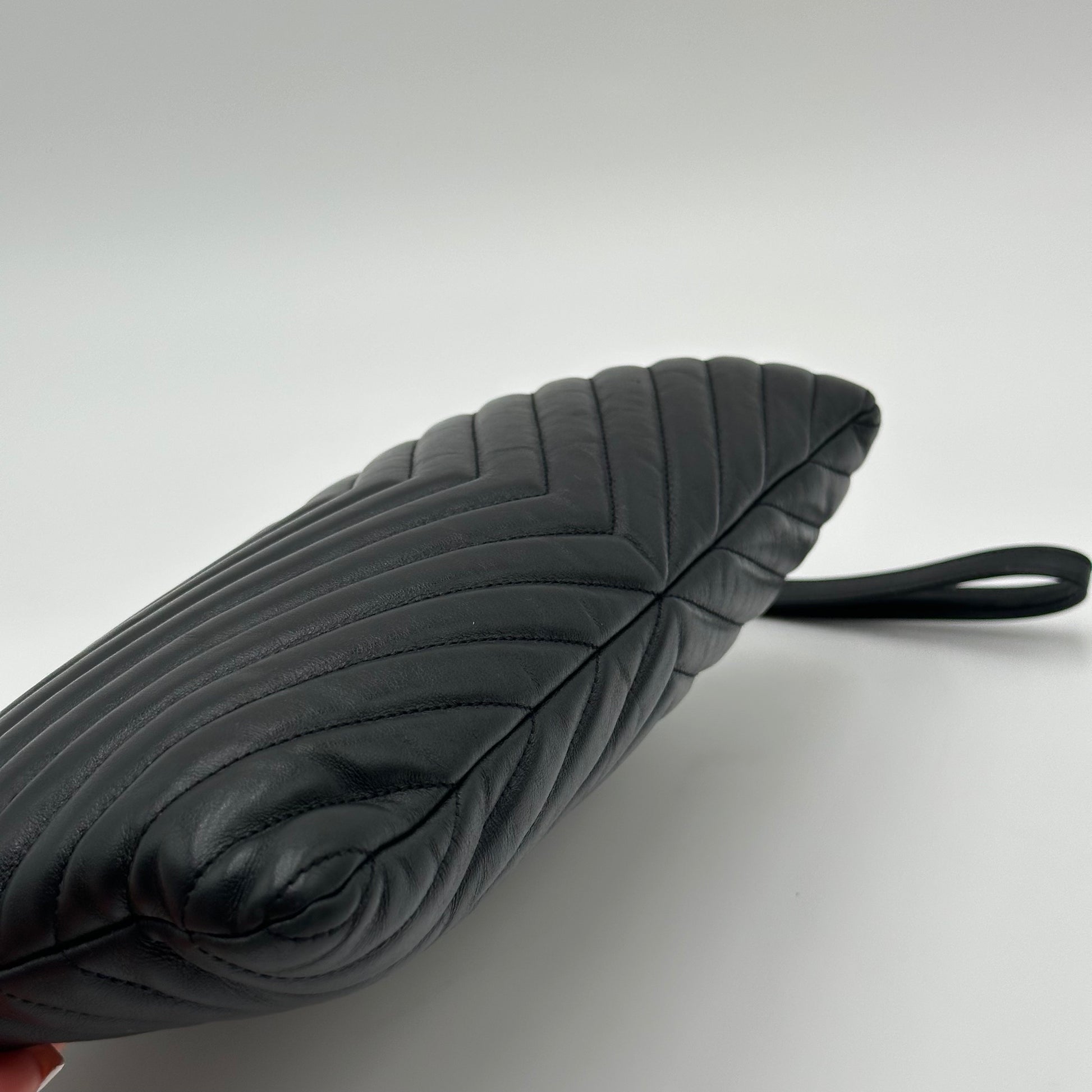 This stunning Saint Laurent V-Stitch Black Zipper Clutch is the definition of sleek, timeless luxury with a modern twist. Released around 2019, this piece features the iconic YSL chevron V-stitch design that effortlessly elevates any outfit. Measuring approximately 10 inches in length by 8 inches in height, it’s the perfect size to carry all your essentials—whether you're heading out for a night on the town, styling it as a daily crossbody, or keeping it classic for a polished business event.