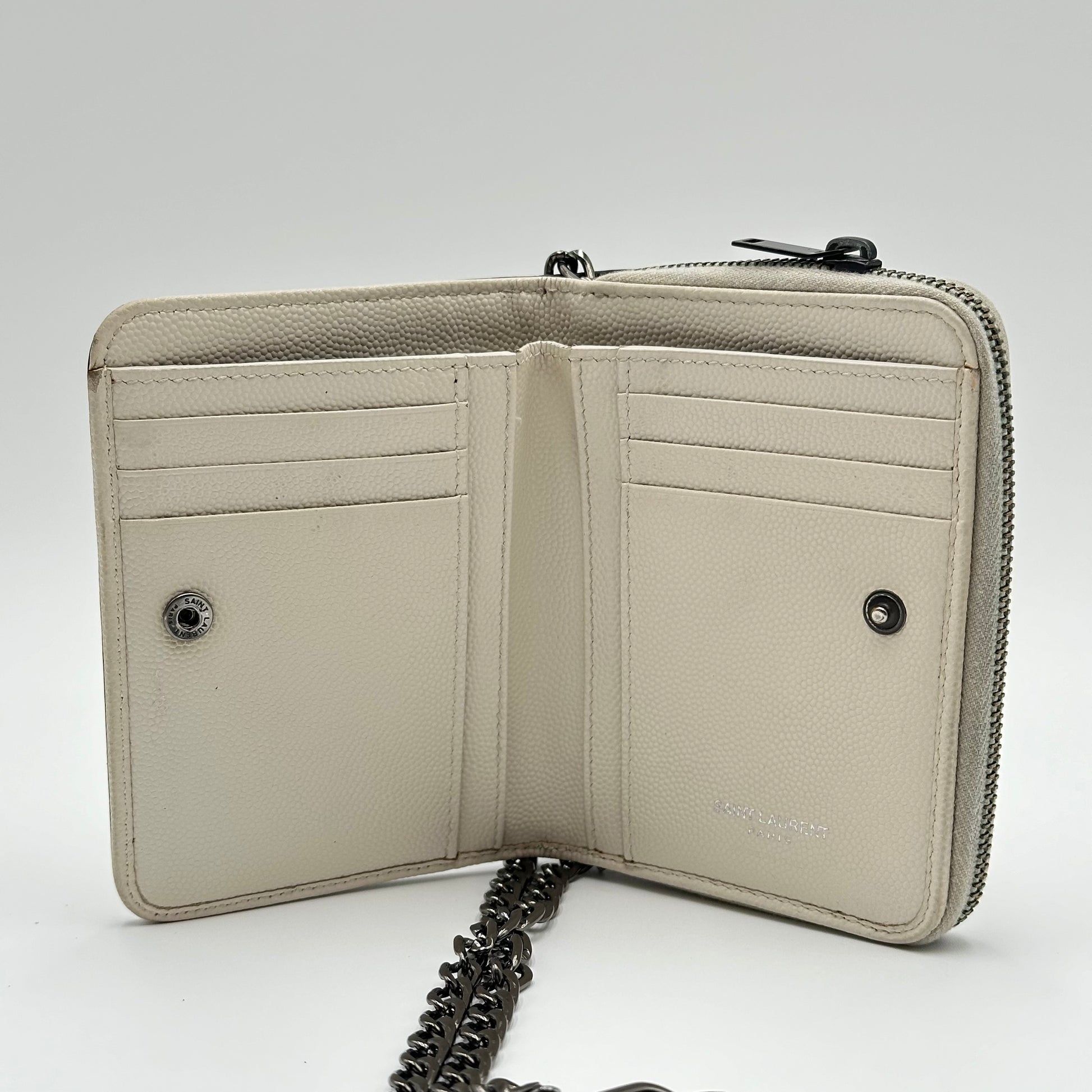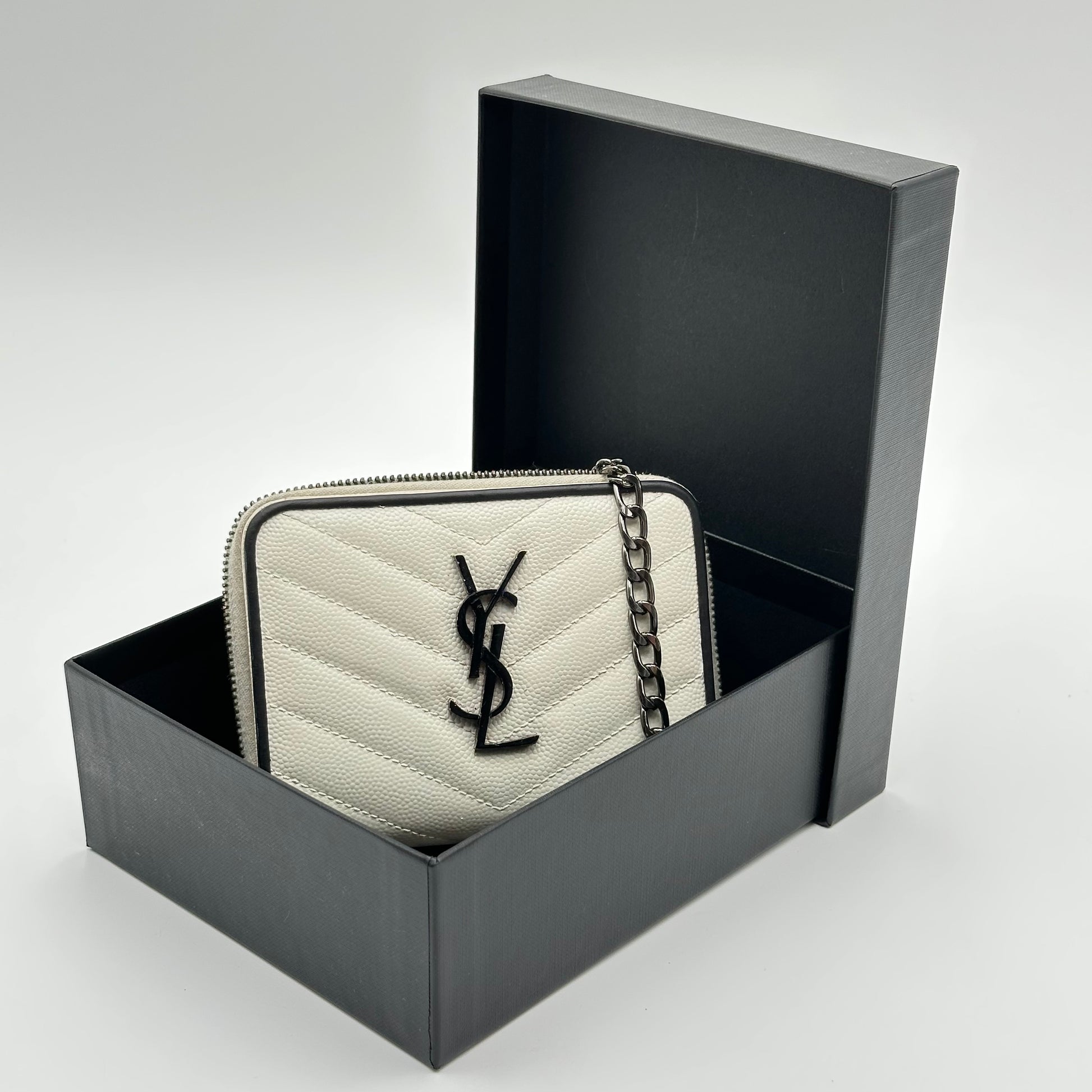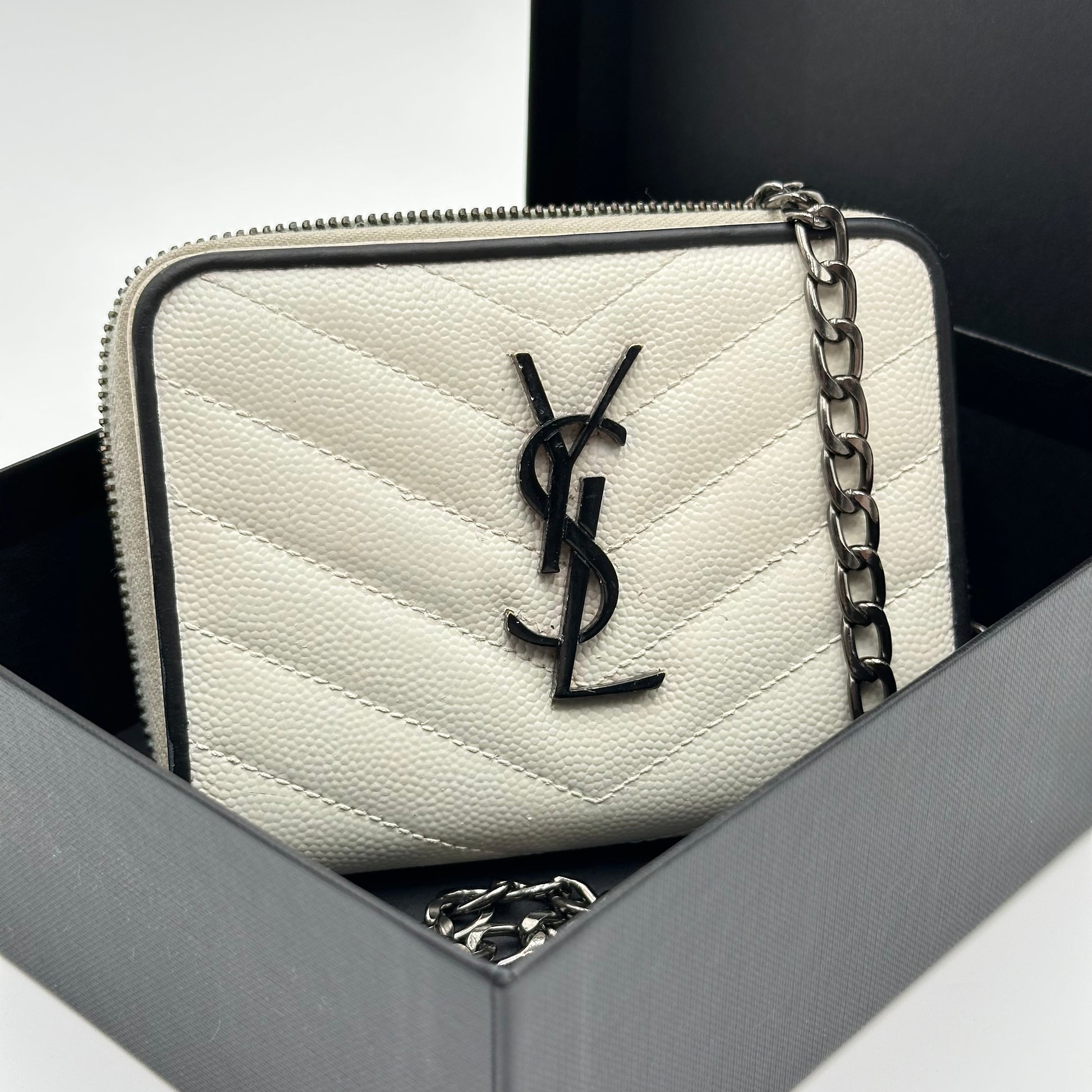 The price includes the wallet and non branded crossbody chain. An authentication certificate can be added for $20 and a dust bag for $30. Originally retailing for over $700, this compact wallet measures approximately 4 inches by 4 inches and can store 8+ cards, with one bill slot and a zipper pocket. The canvas shows normal wear, the interior is clean with light signs of use, and the corners and edges also show typical wear. The white exterior lining has been professionally repainted and sealed to give it a refreshed look. Please review all photos carefully before purchasing. Certificate of authenticity, dust bag and shopping bag available at extra cost. All sales final, no returns or exchanges.