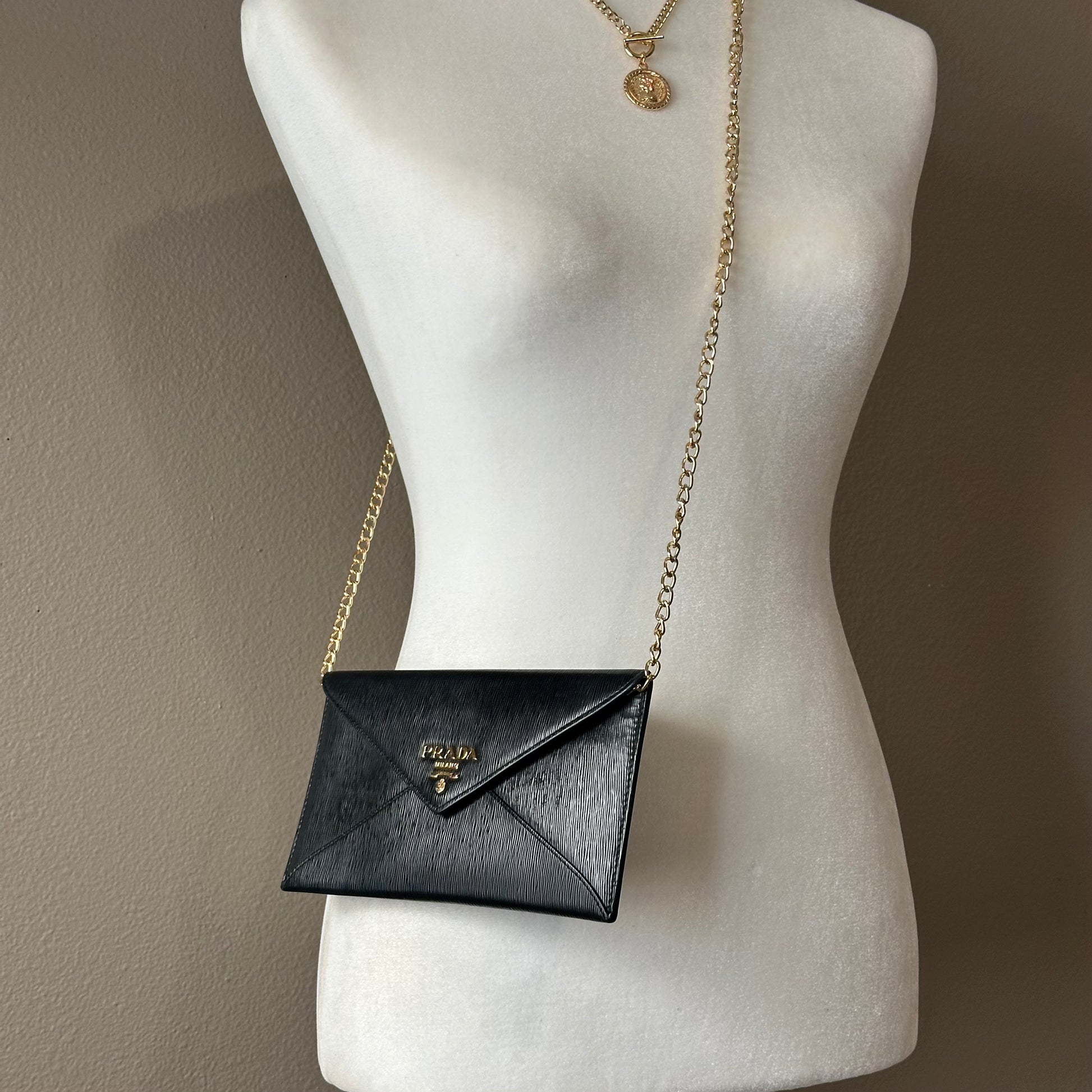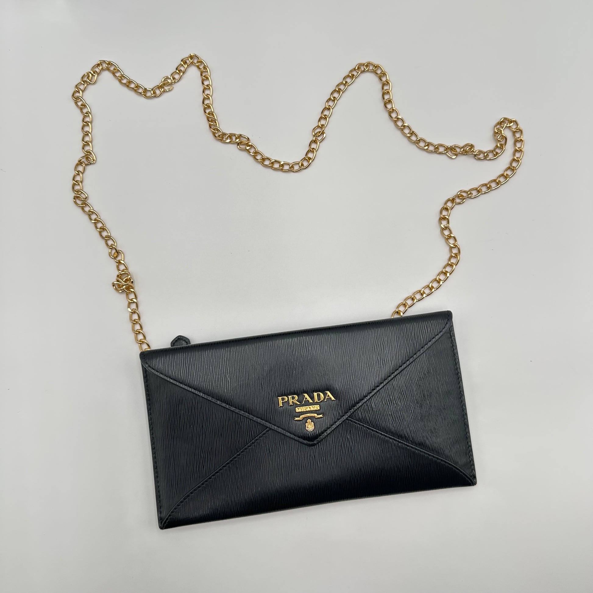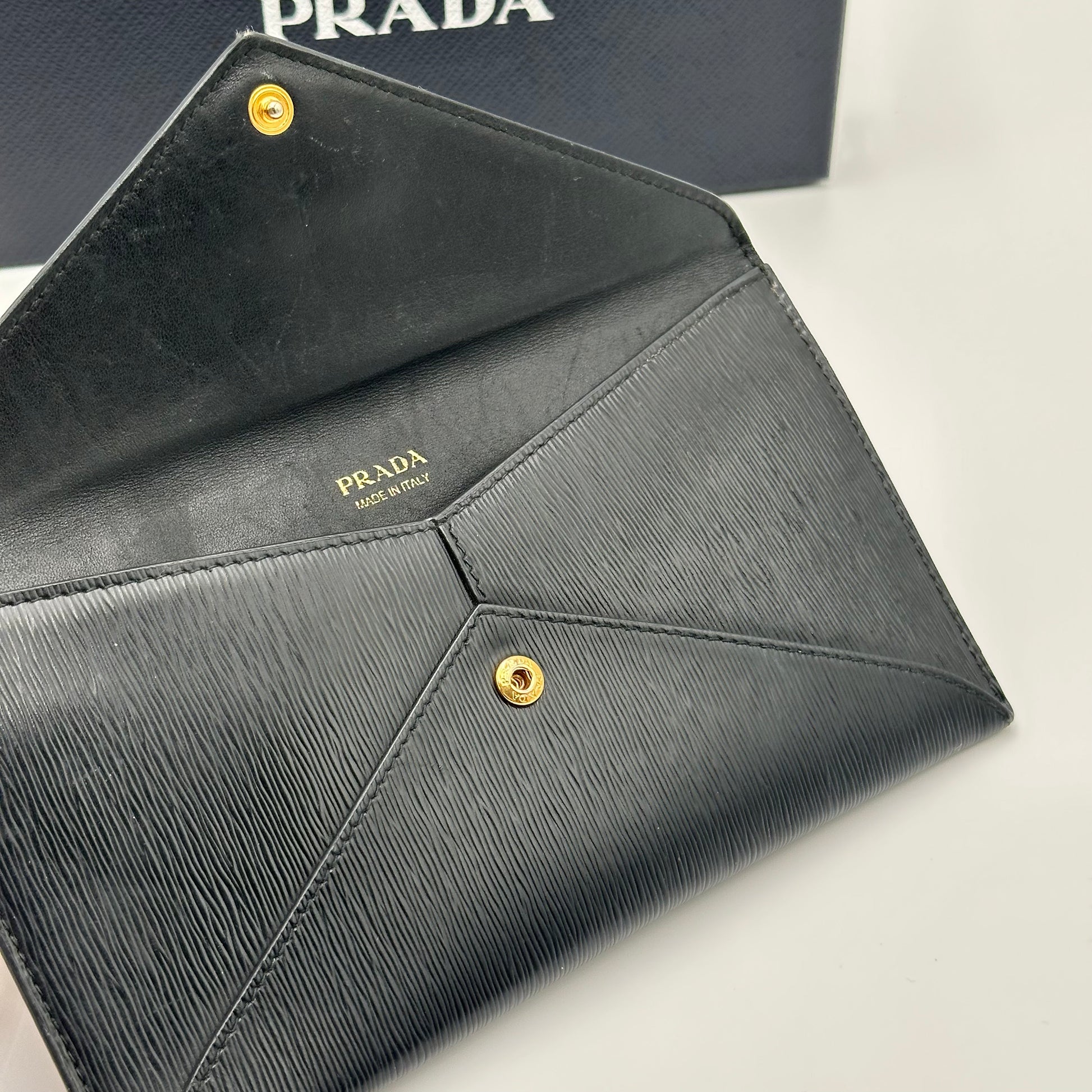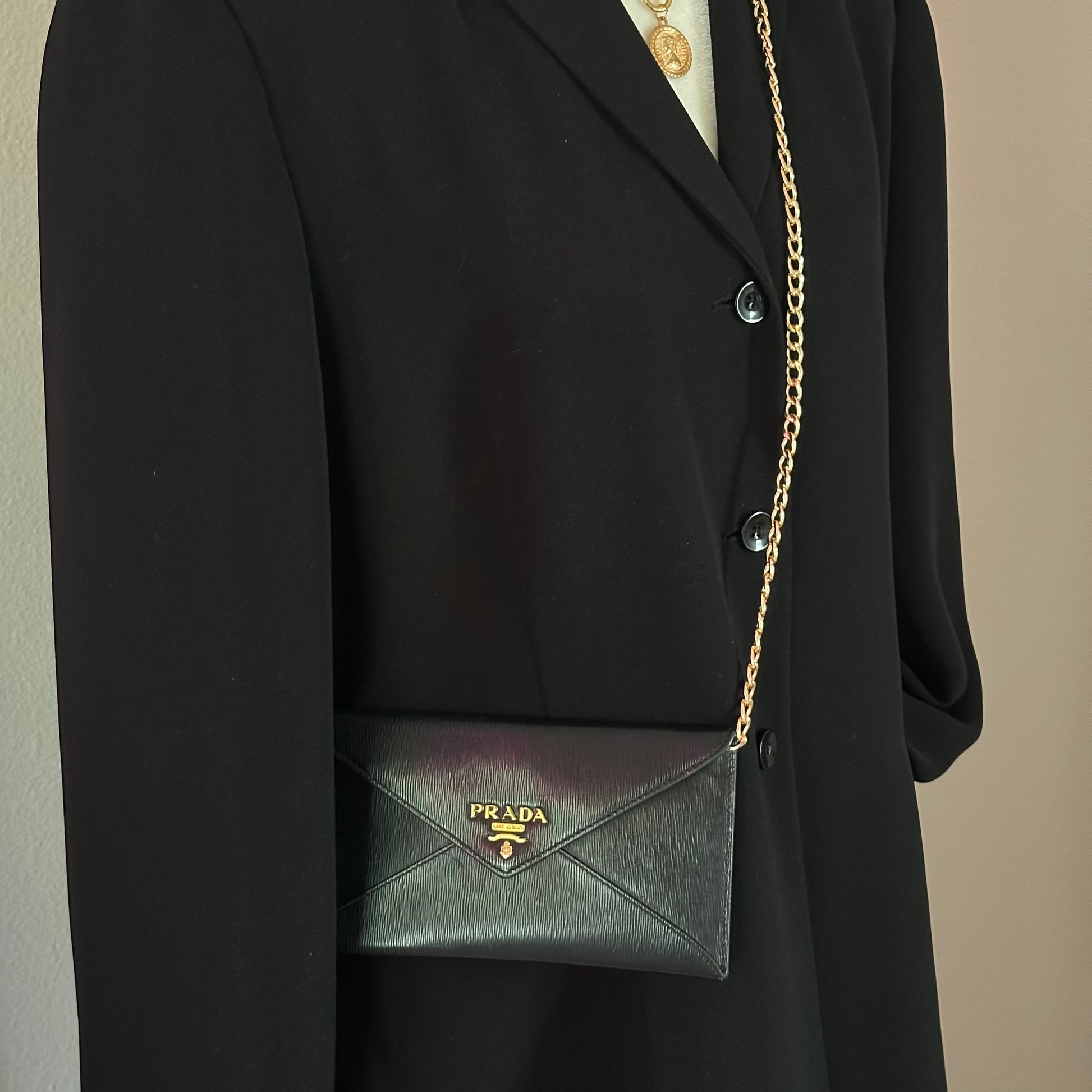 Authentic PRADA Black Saffiano Envelope Crossbody Wallet