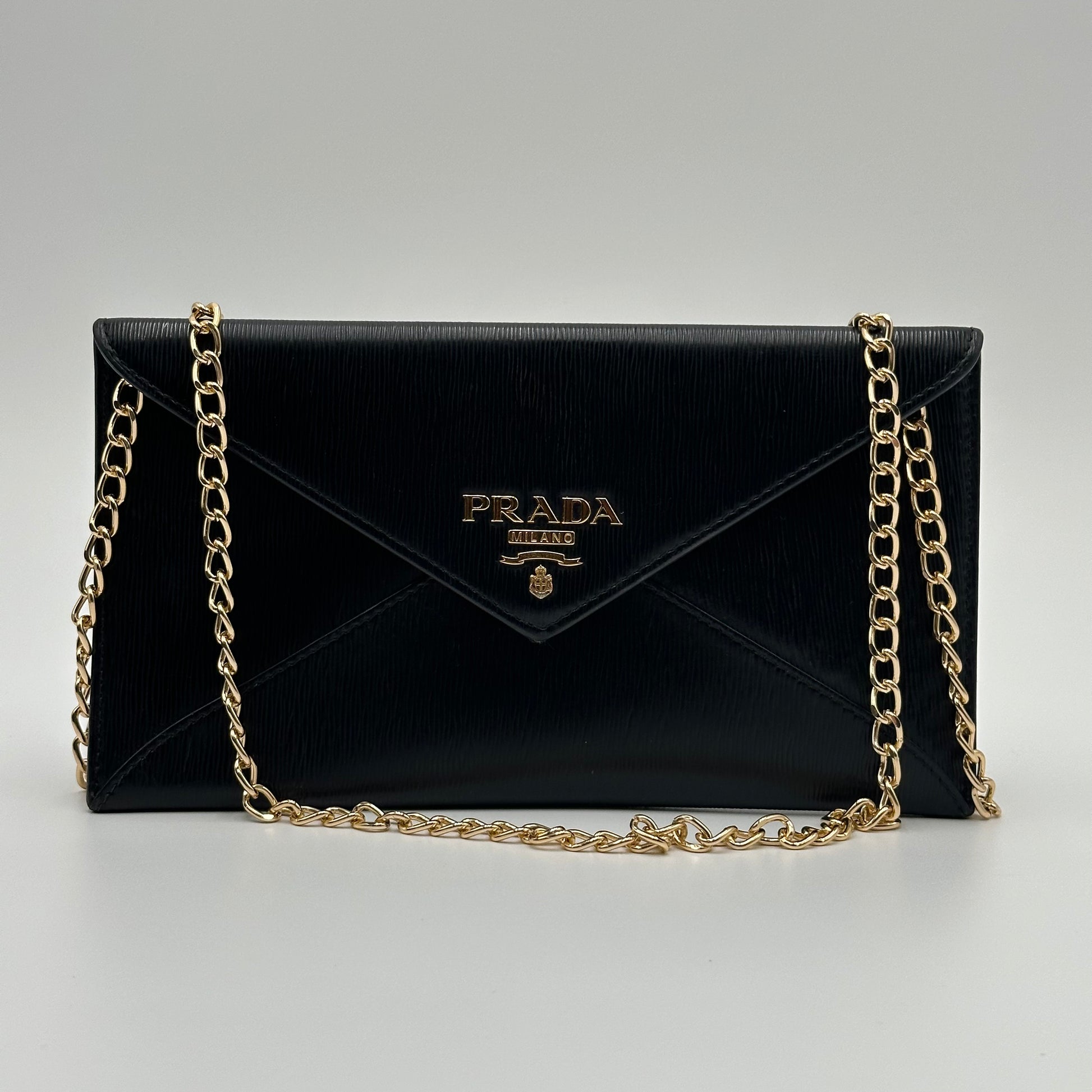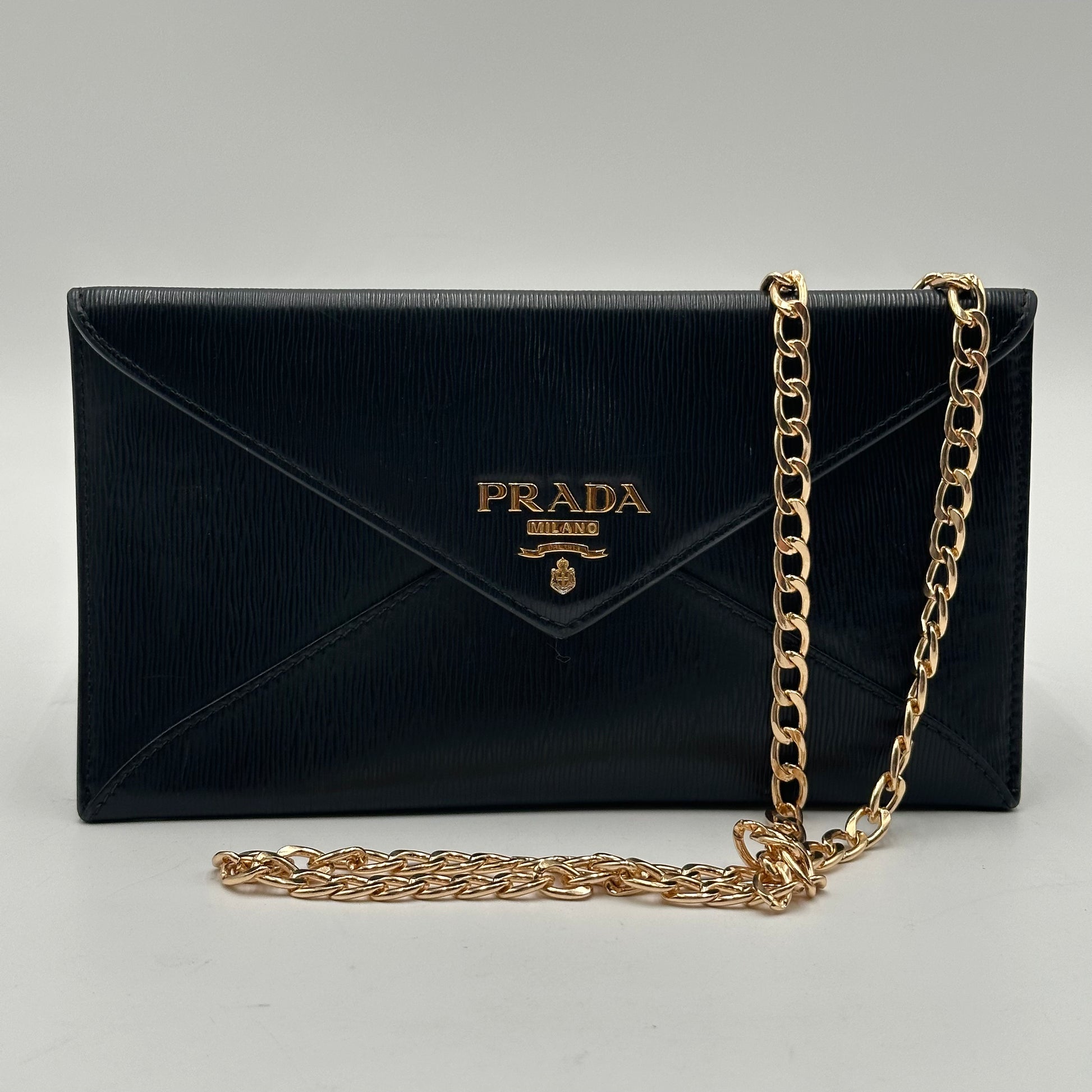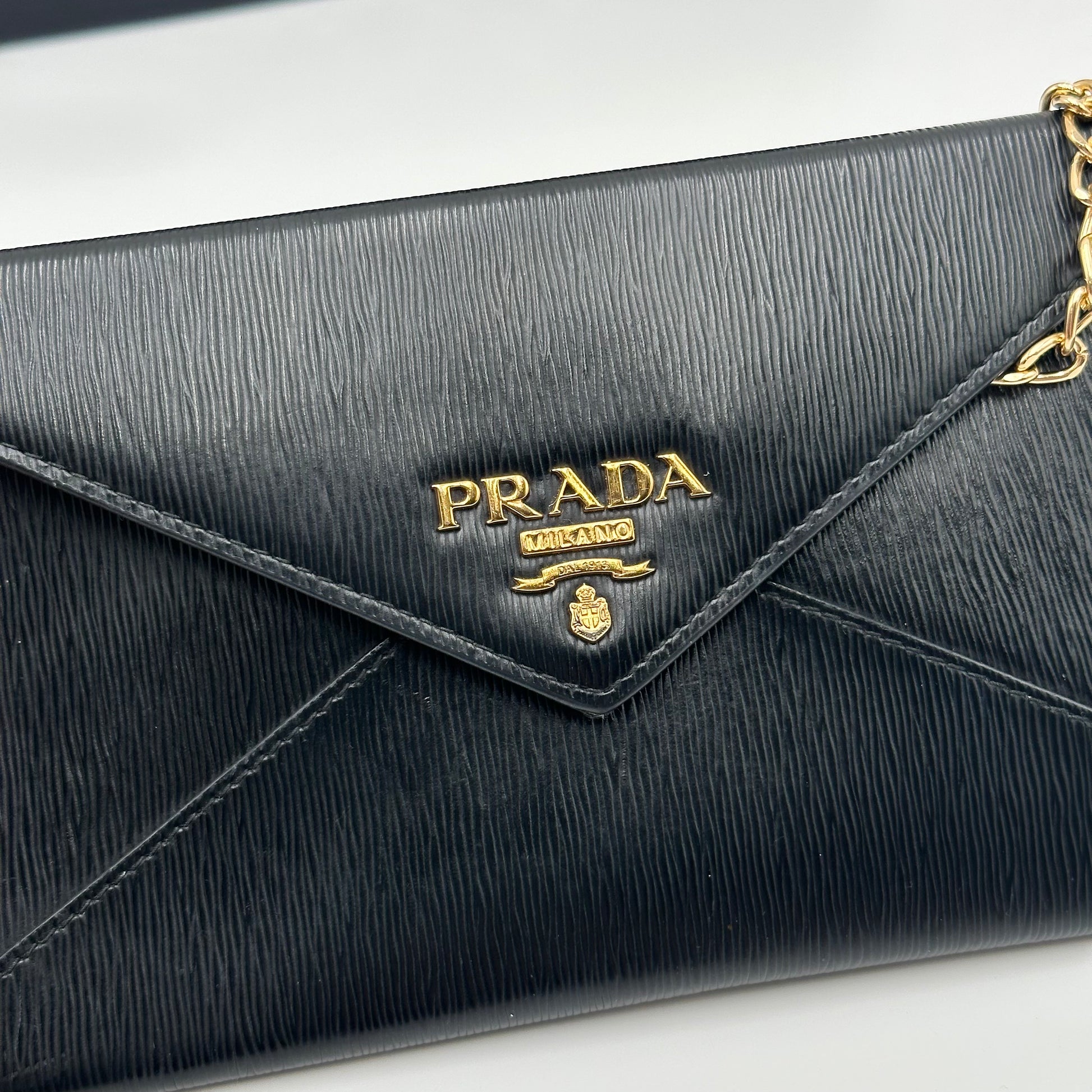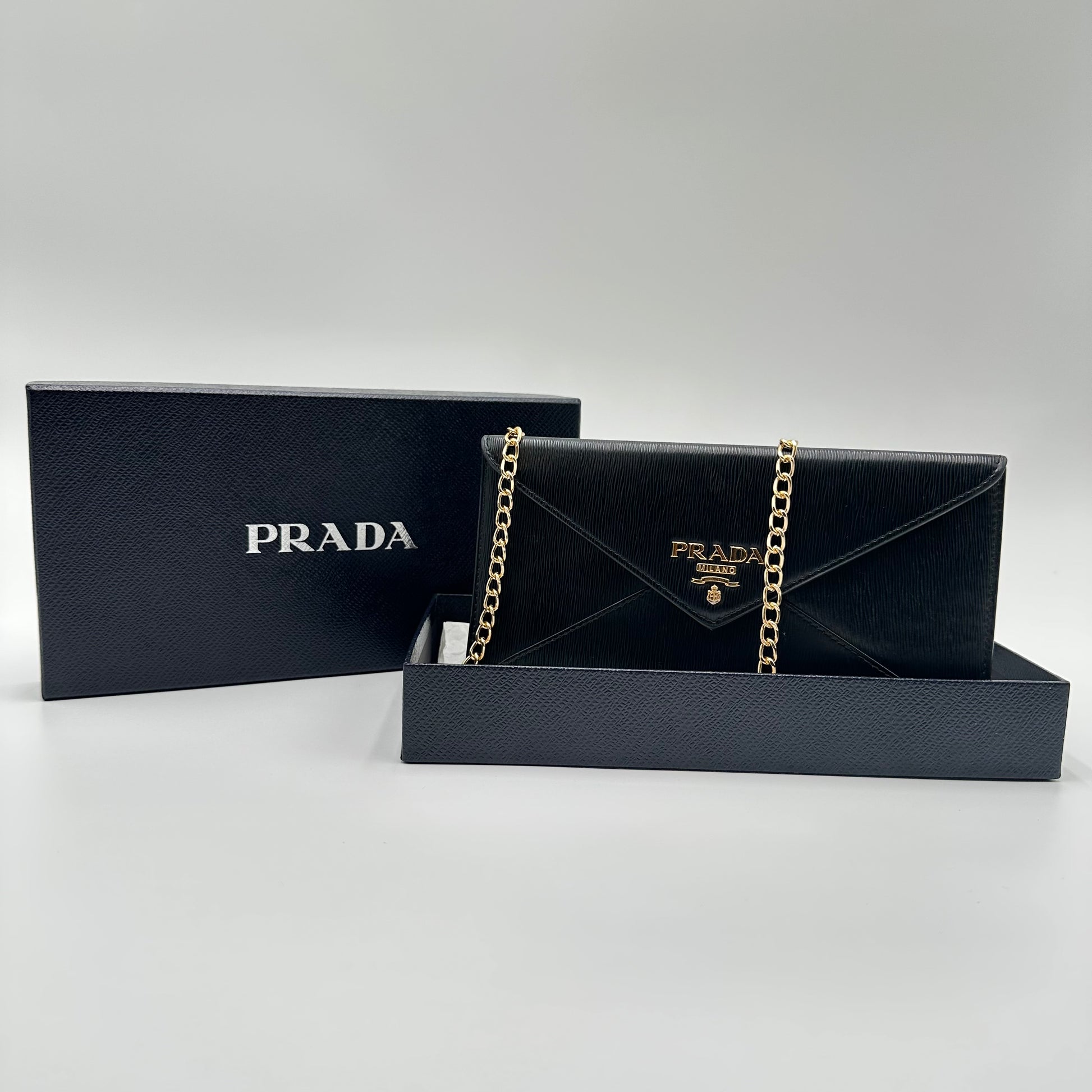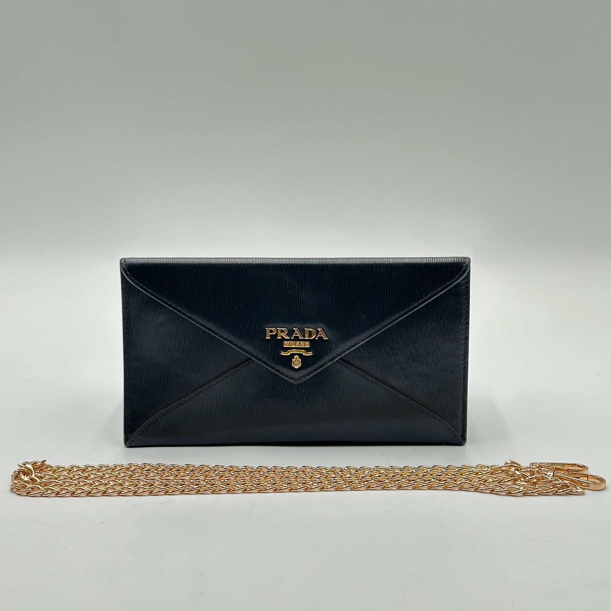 Authentic PRADA Black Saffiano Envelope Crossbody Wallet