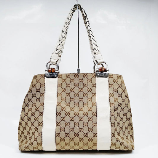 Authentic GUCC Canvas Large Bamboo Tote